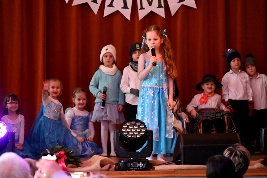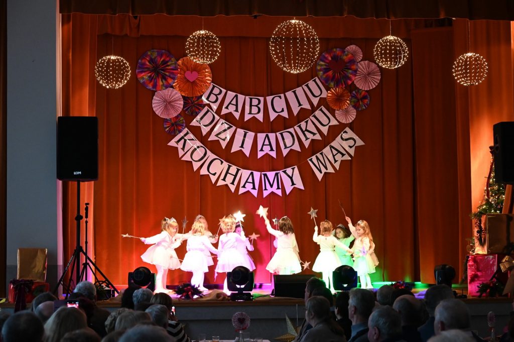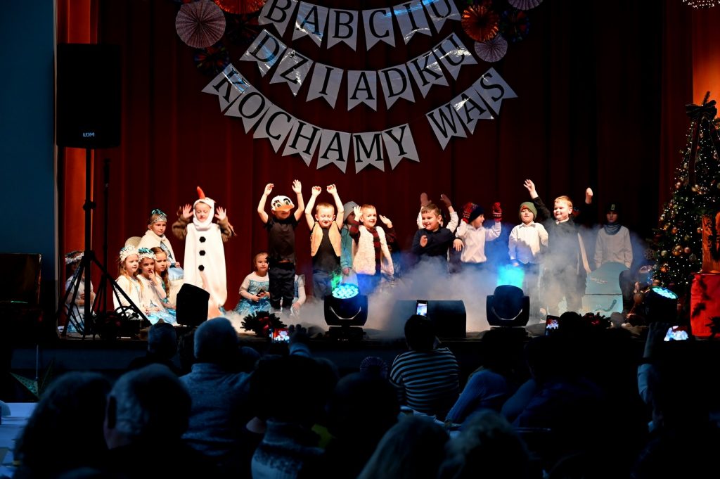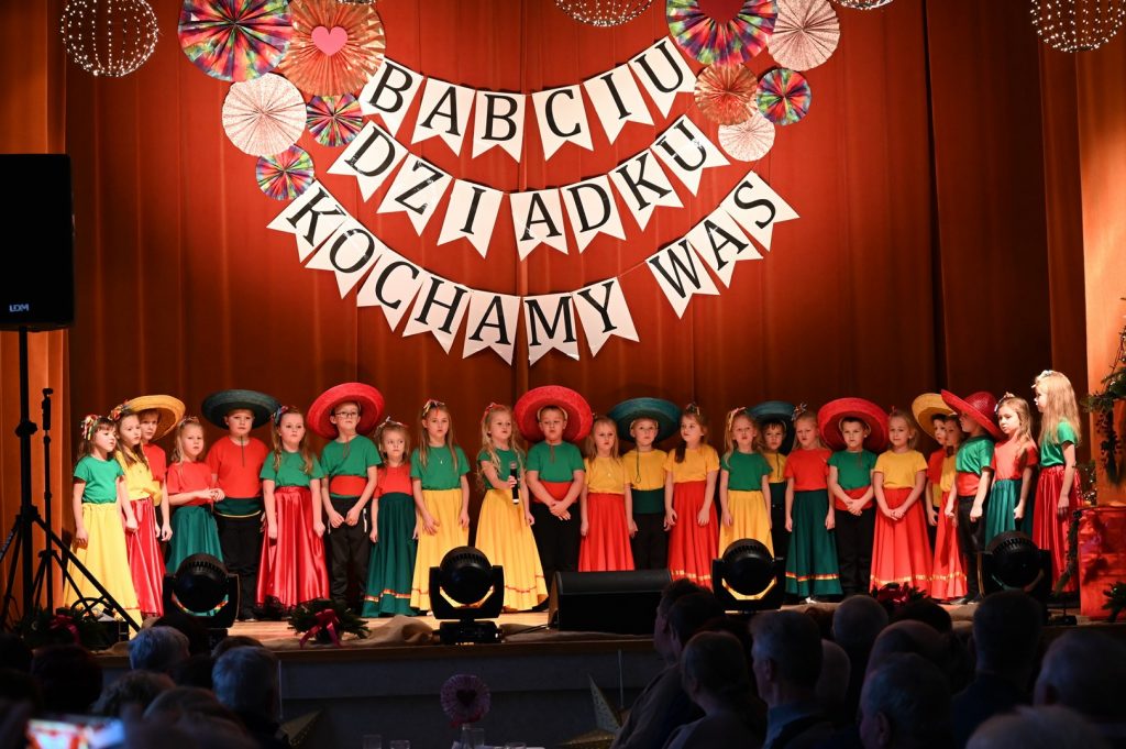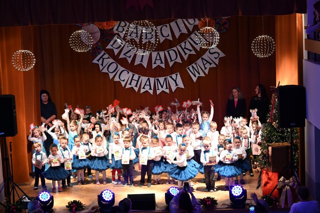 Babcia i Dziadek to słowa, które każdemu dziecku kojarzą się z ciepłem, miłością i wszystkim co dobre. W naszym przedszkolu już 15 i 16 stycznia podczas uroczystości z okazji Dnia Babci i Dziadka licznie przybyli goście: babcie oraz dziadkowie  mieli okazję podziwiać dzieci w specjalnie dla nich przygotowanym programie artystycznym. Wnuczęta zaprezentowały inscenizacje, wiersze, piosenki oraz tańce. W przepięknej scenografii oraz wyjątkowej atmosferze dzieci wystąpiły przed najbliższymi. Uśmiechnięte, rozpromienione twarze babć i dziadków dały wyraz tego jak ważne są takie spotkania i chwile spędzone z wnukami.