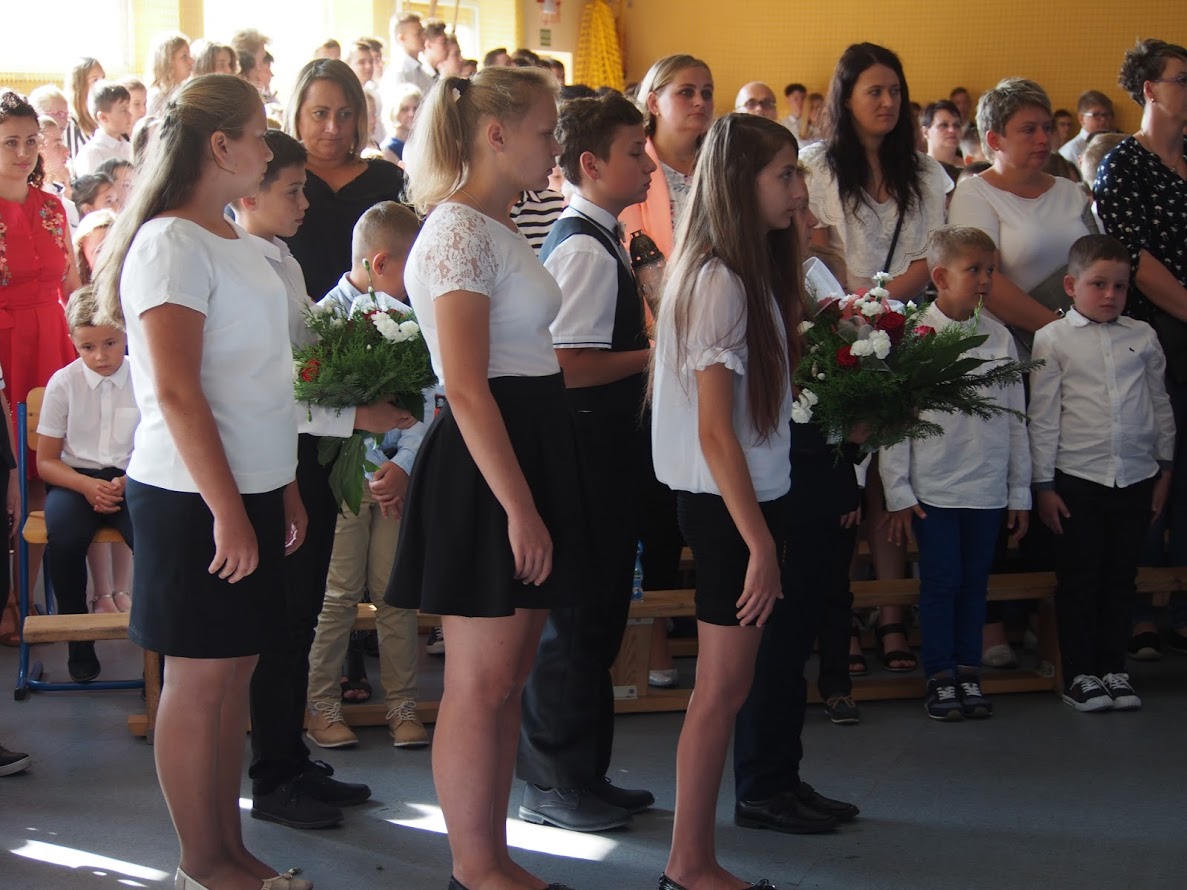 Tradycyjnie mszą św. w naszym kościele parafialnym rozpoczęliśmy nowy 2018/2019 rok szkolny. Życzenia dobrych i szczęśliwych kolejnych 10-ciu miesięcy płynące od p. Ewy Białkowskiej i zaproszonych gości oraz szczególne podziękowania dla odchodzącej na zasłużoną emeryturę Pani Haliny Kurczab… I do klas!!!