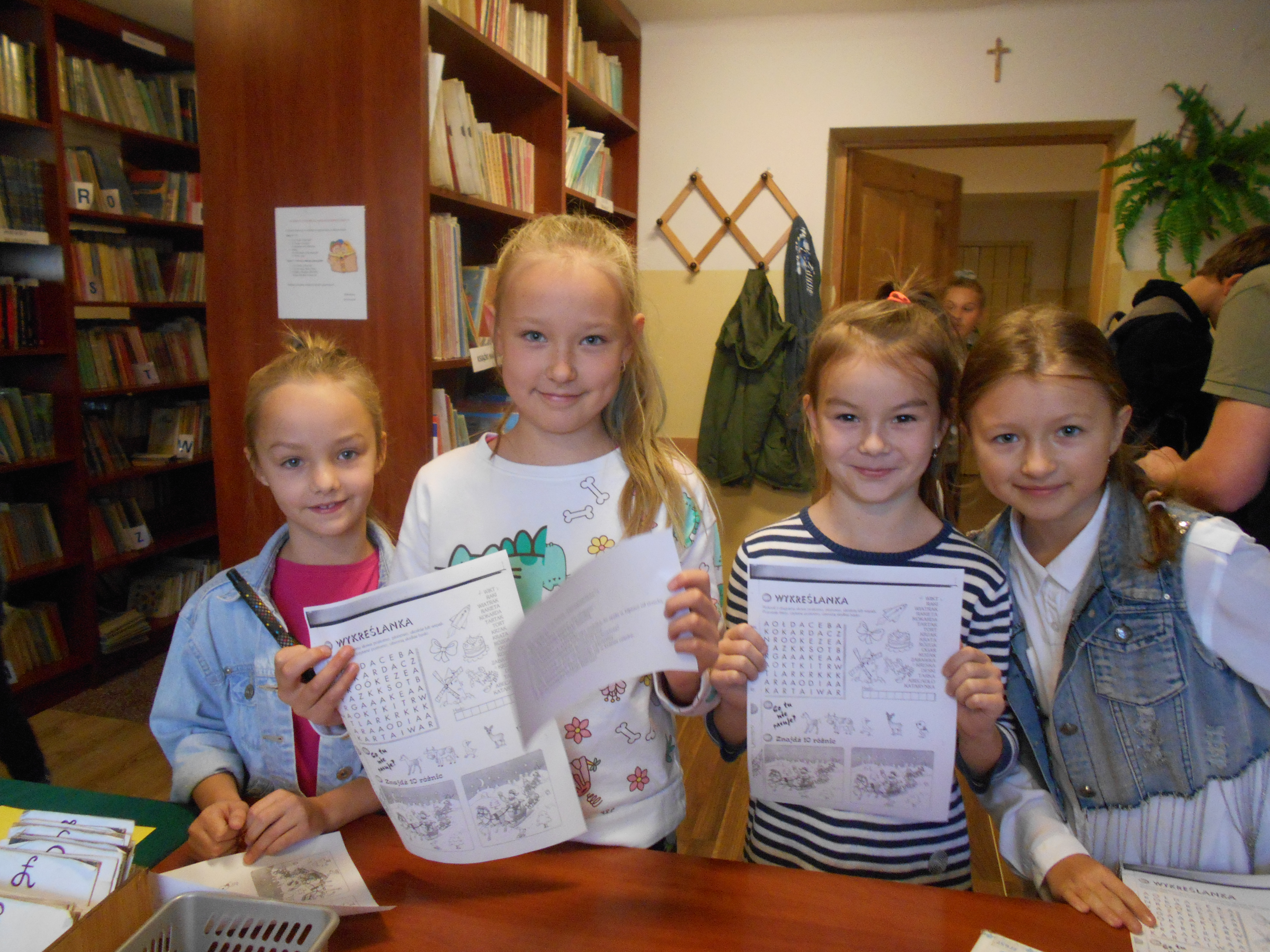 W dniach 22.10.2018 – 26.10.2018 w bibliotece szkolnej trwał tydzień z książką. Uczniowie młodszych klas mogli sprawdzić swoją wiedzę dotyczącą ulubionych książek rozwiązując krzyżówki, rebusy, zagadki, wykreślanki czy odczytując szyfry. Natomiast uczniowie starszych klas ( IV- VIII oraz klas gimnazjalnych) mogli wziąć udział w zabawie, której celem było zapoznanie ich z nowościami czytelniczymi. Codziennie otrzymywali wskazówki w formie szyfru lub pytań, które zapoznawały ich z treścią i tematyką nowych książek a także sprawdzały ich wiedzę czytelniczą, historyczną czy geograficzną. Ponadto w związku z przypadającą w listopadzie setną rocznicą odzyskania przez Polskę niepodległości, mogli rozwiązać krzyżówkę dotyczącą wiadomości o Naszej Ojczyźnie oraz poznać nowy sposób na zapamiętanie niektórych ważnych dat historycznych. Również przez cały tydzień w bibliotece szkolnej dostępna była dla uczniów wystawa nowości czytelniczych wraz