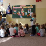 z historią psa Dżoka i perypetiami psotnego kota Cukierka. Natomiast w przedszkolu młodsze grupy ( 3, 4 letnie) z uwagą wysłuchały przygód samochodzika Franka i żółwia Franklina a starszaki poznały historię psa Marudka, opowiedzianą za pomocą teatrzyku kamishibai.