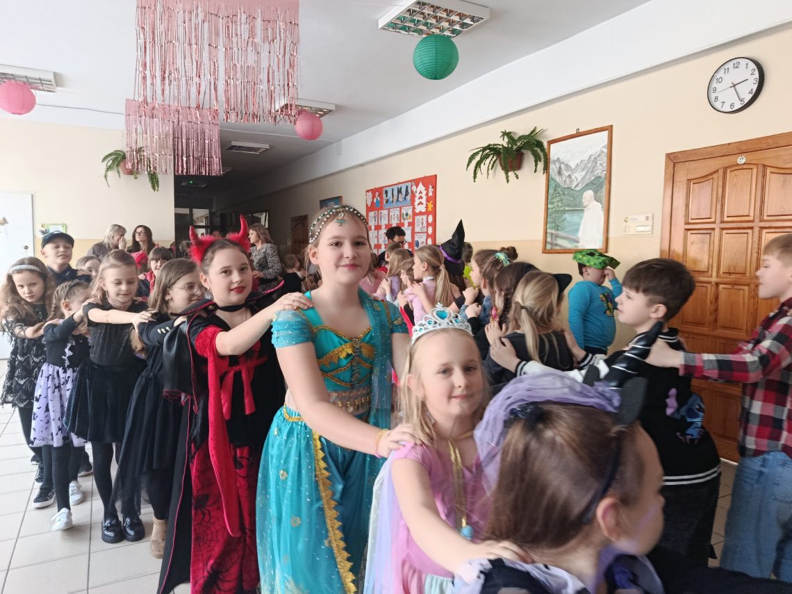 Karnawał to czas muzyki, tańca, kolorów i dobrej zabawy, ale też okazja do wykazania się pomysłowością podczas przygotowywania swojego karnawałowego kostiumu. Z pewnością możemy przyznać, że kreatywności w tej dziedzinie naszym uczniom nie brakuje. Dnia 17 lutego szkolny korytarz wypełnił się superbohaterami, zwierzętami, księżniczkami, czarownicami, przedstawicielami różnych zawodów oraz wieloma innymi wyjątkowymi postaciami. Działo się tak za sprawą balu karnawałowego zorganizowanego dla uczniów klas 1-3. Wiele ukrytych pod barwnymi przebraniami twarzy, trudno było rozpoznać. Skoczna muzyka, tańce i wesołe zabawy gwarantowały doskonałą atmosferę. Energii do wspólnych pląsów naszym małym tancerzom dostarczył pyszny poczęstunek przygotowany przez Rodziców. Czas upłynął błyskawicznie, a uśmiech i dobry nastrój towarzyszył naszym wychowankom do końca tej…