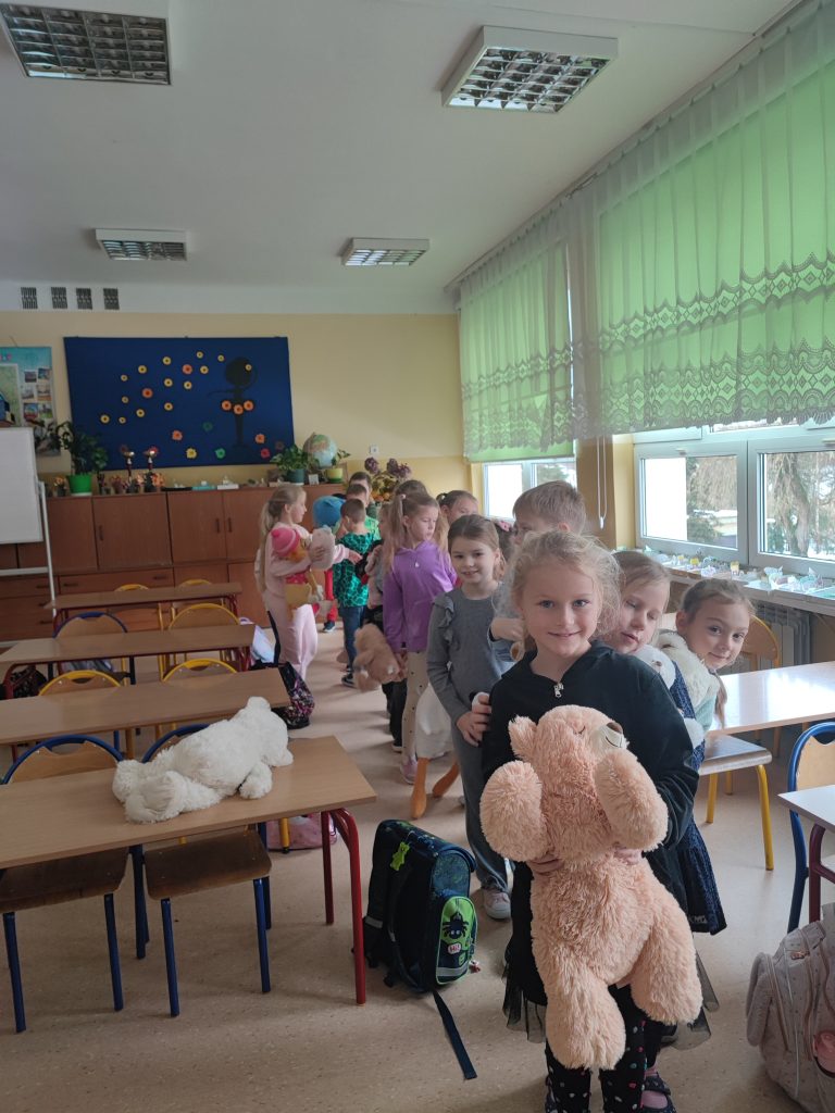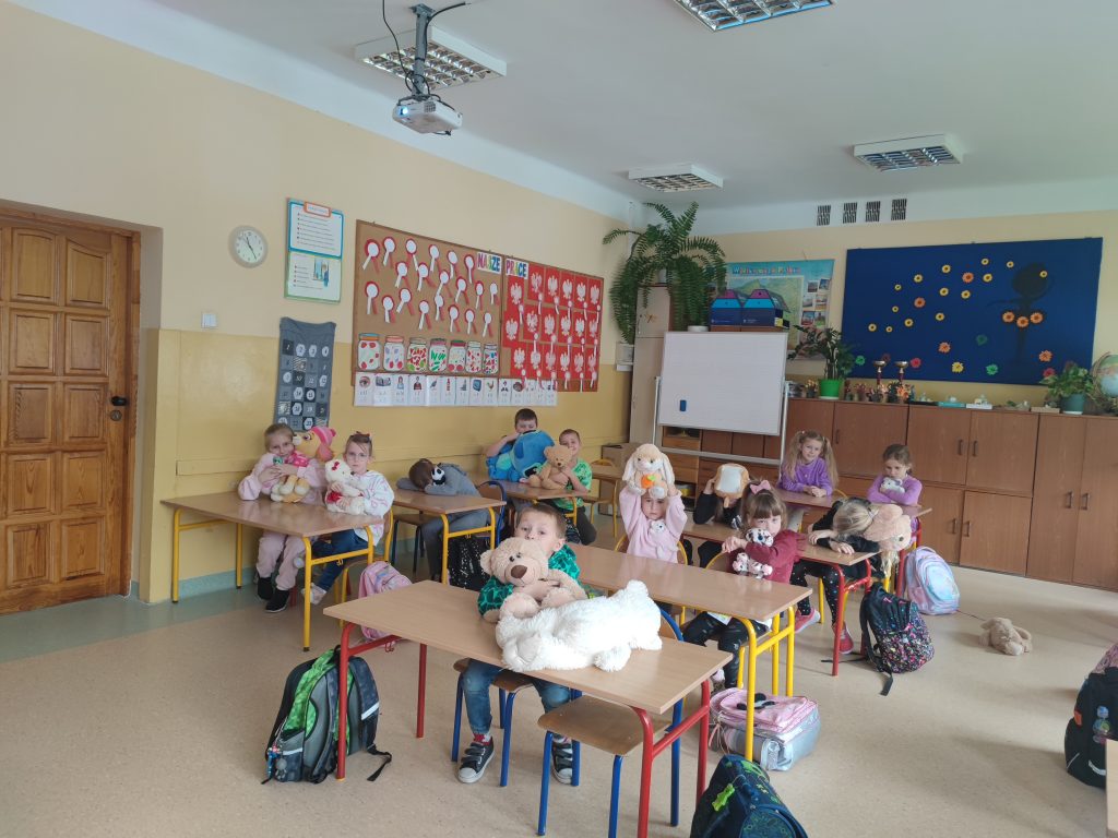 Uczniowie klas pierwszych tego dnia także obchodzili to święto. Wyjątkowo w tym dniu mogli zabrać do szkoły swoje ulubione pluszaki. Następnie dzieci uczestniczyły w zajęciach bibliotecznych, w trakcie których poznały historię powstania święta oraz sylwetki najpopularniejszych misiów na świecie m.in. Kubusia Puchatka. Paddingtona, Misia Uszatka. Podczas zajęć uczniowie także rozwiązywali zagadki, uczestniczyli w zabawach ruchowych i muzycznych. Na koniec zajęć wysłuchali bajki w formie teatrzyku kamishibai „Mój przyjaciel pluszowy miś”.
