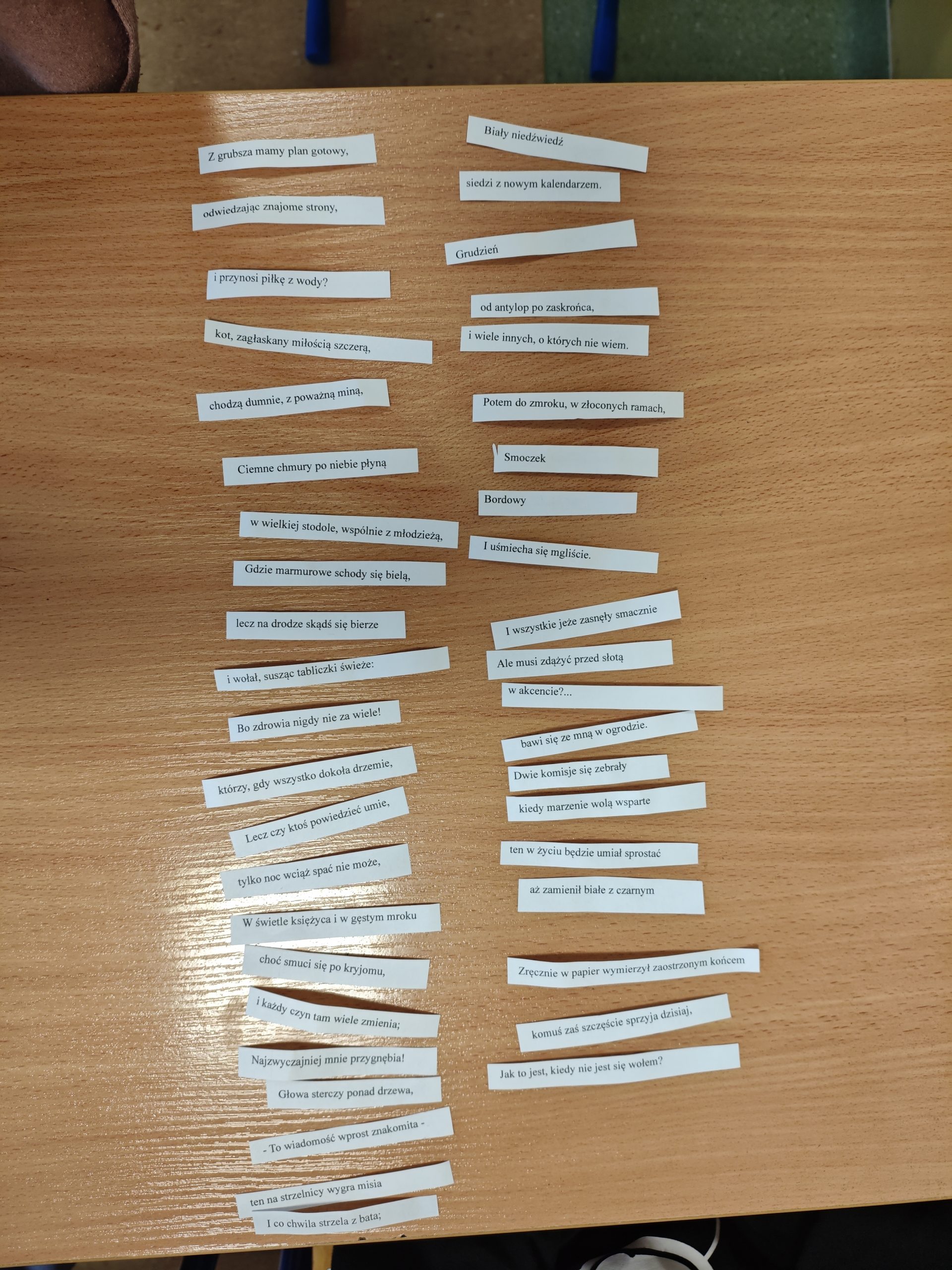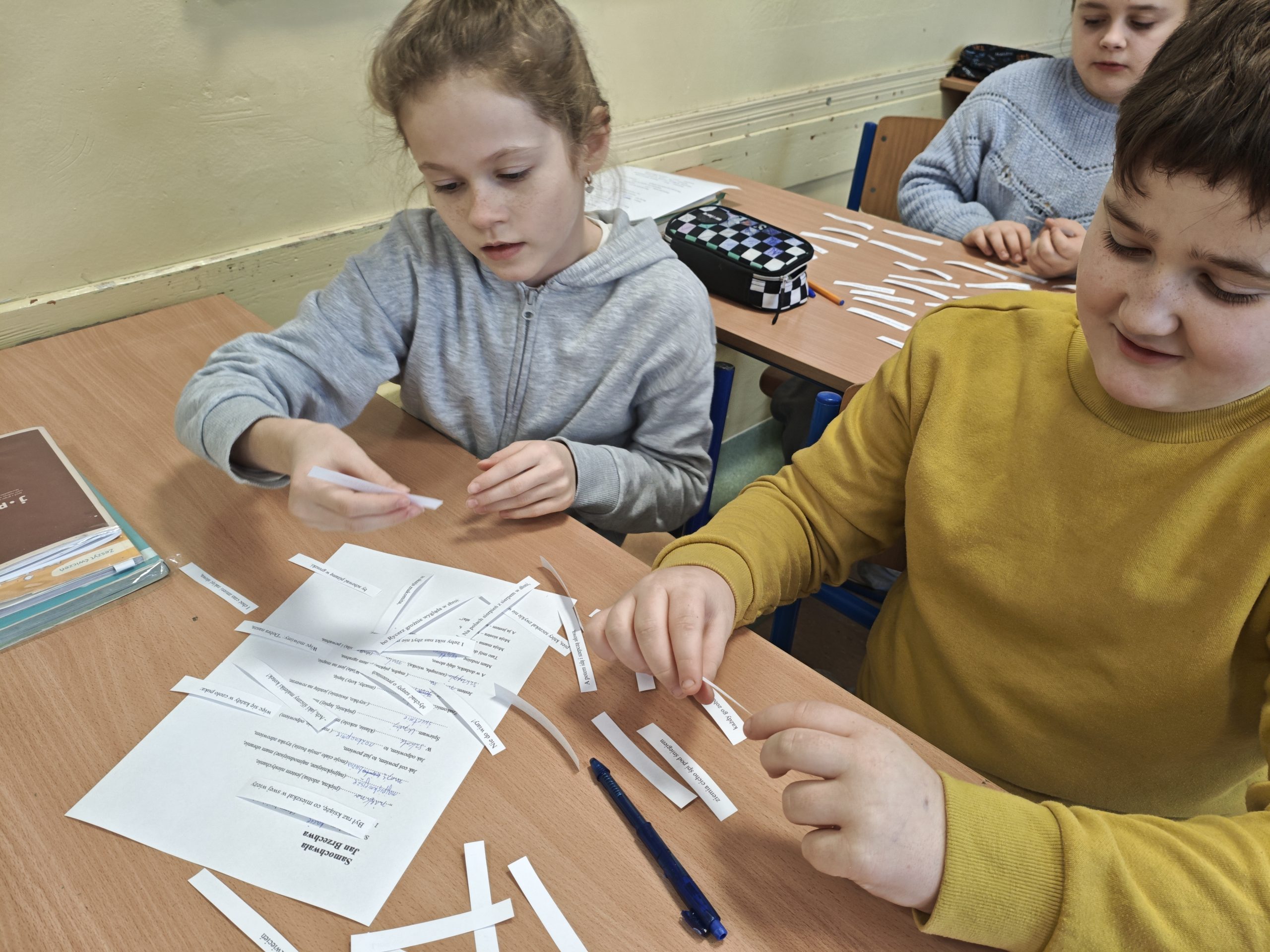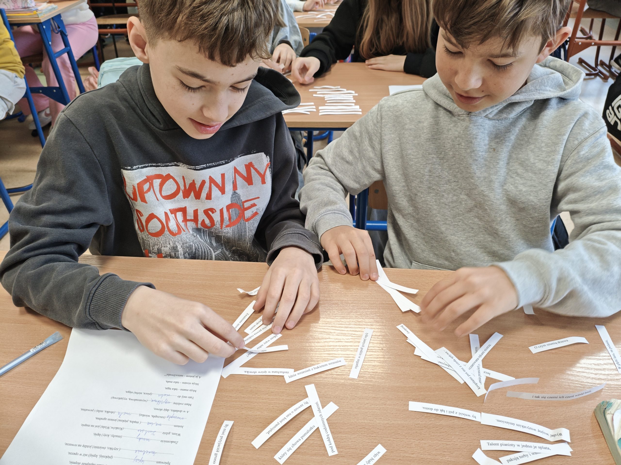 W  pierwszej połowie kwietnia w ramach obchodów „Światowego Dnia Poezji”  uczniowie klas czwartych, piątych, szóstych i siódmych naszej szkoły uczestniczyli w zajęciach bibliotecznych. Podczas zajęć uczniowie mogli wcielić się w rolę poetów. Ich zadaniem było m.in.: utworzyć nowe wiersze z rozsypanki wersów wierszy Marcina Brykczyńskiego, stworzyć nową wersję opisu sadu lub śniadania u Sędziego z „Pana Tadeusza”, czy „Żaby” Jana Brzechwy. W trakcie lekcji uczniowie mogli wykazać się przede wszystkim swoją kreatywnością, pomysłowością czy zdolnością logicznego myślenia. Wiele nowych utworów, które powstały w trakcie zajęć bez wątpienia mogłoby znaleźć się w tomikach poezji współczesnej.