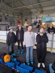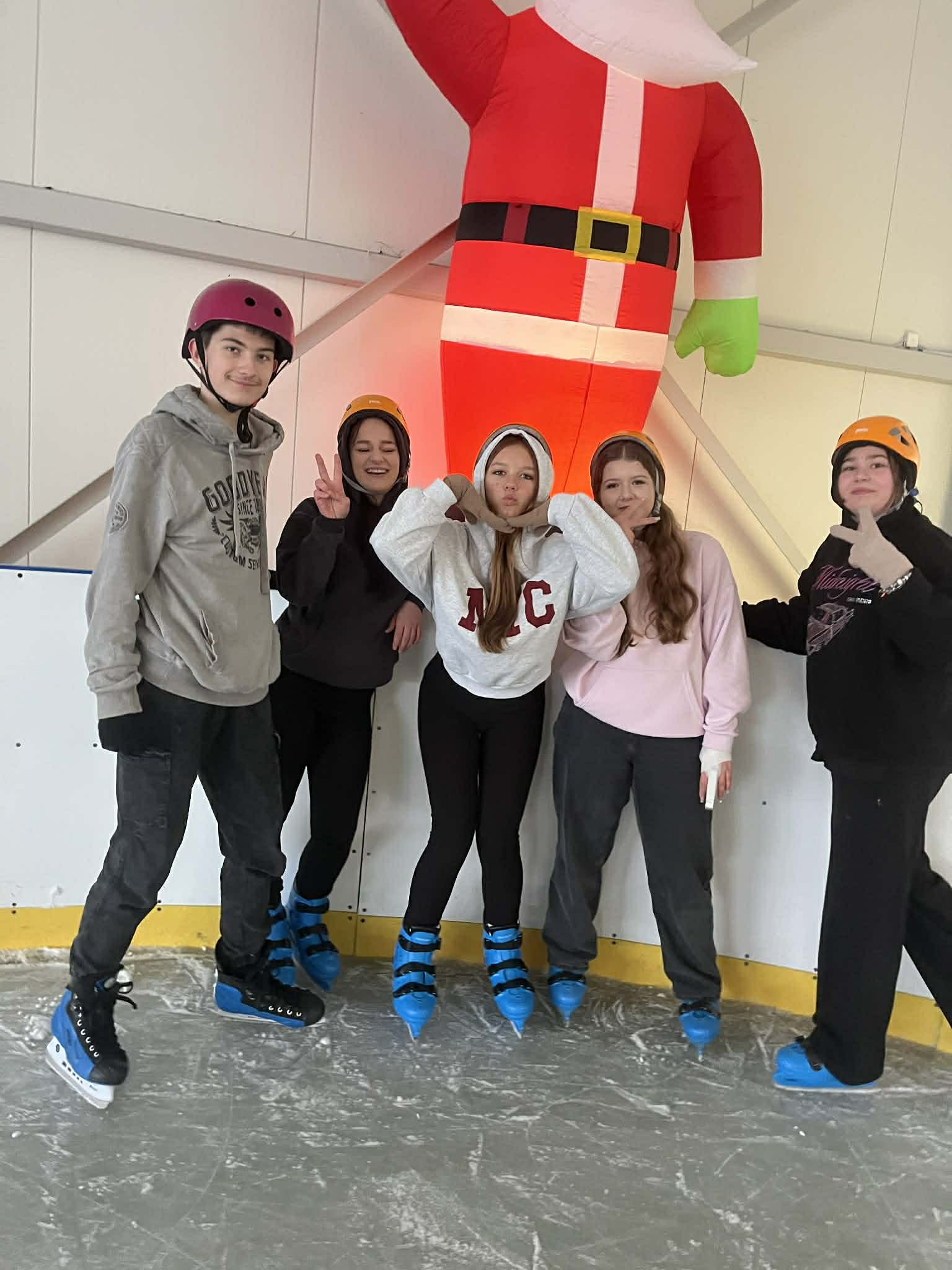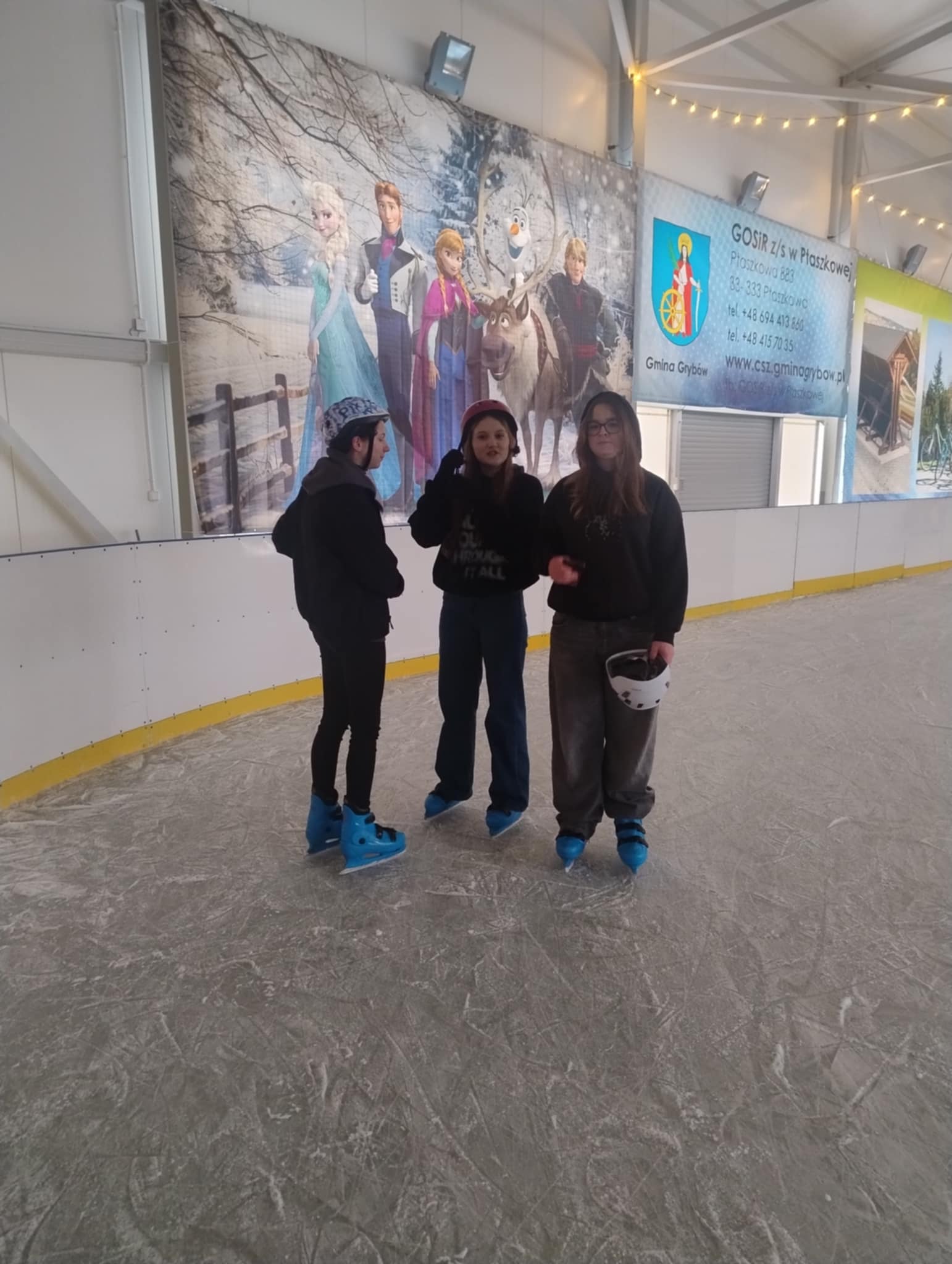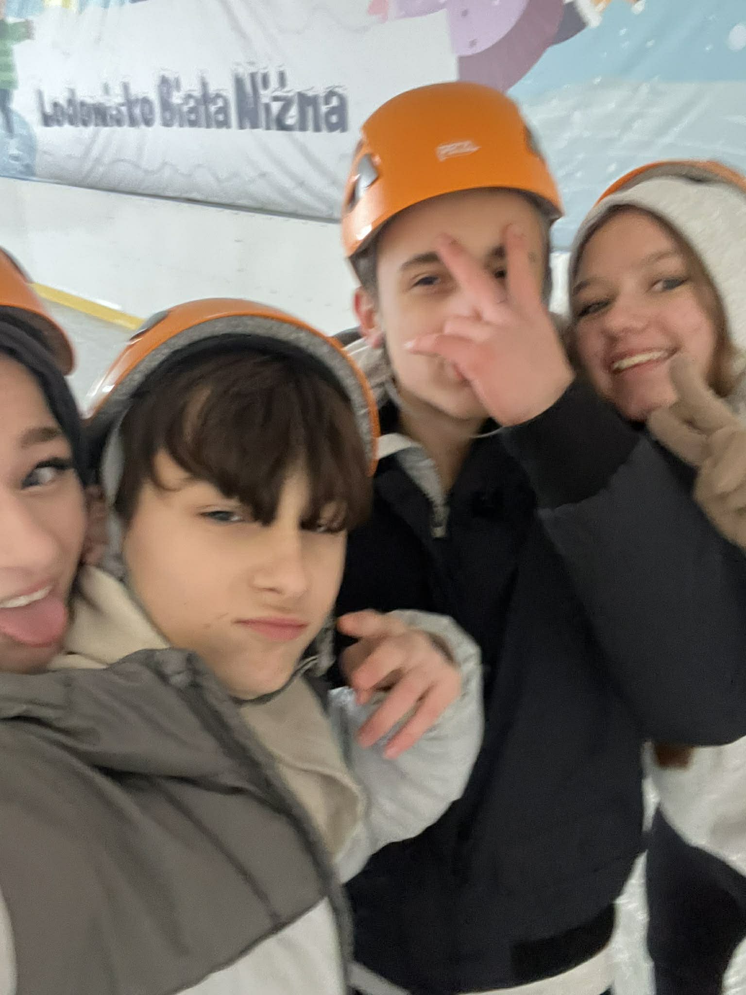 Uczniowie klas 8b oraz 7b spędzili wyjątkowy dzień na wspólnej wycieczce na lodowisku w Białej Niżnej. Już od pierwszych chwil na tafli było widać świetną atmosferę – jedni doskonalili swoje umiejętności, inni stawiali pierwsze kroki na łyżwach, ale wszyscy bawili się doskonale. Nie zabrakło śmiechu, drobnych wyścigów, prób trudniejszych figur i wzajemnego dopingu. Po pełnym wrażeń czasie na lodzie cała grupa udała się na zasłużony posiłek. Wspólna pizza okazała się idealnym zwieńczeniem wyjazdu – rozmowy, żarty i dobre humory jeszcze długo nam towarzyszyły. To był naprawdę udany dzień, pełen atrakcji, ruchu i dobrej zabawy. Już nie możemy doczekać się kolejnej takiej wycieczki!