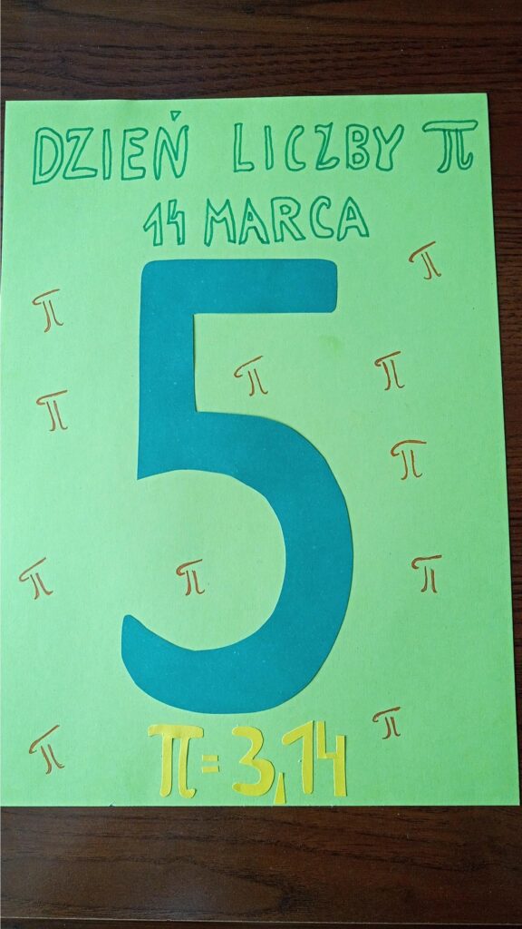 Z okazji święta liczby π nasza szkoła przystąpiła do projektu pt „Zaπszmy π”. W jego ramach uczniowie kl. Vb, VIa, VIb przesyłali cyfry, z których utworzyliśmy cześć rozwinięcia dziesiętnego liczby π. Na lekcjach matematyki poznali tajemniczą liczbę pi oglądając film, tworzyli chmurę wyrazową z sylabą pi, szukali w rozwinięciu liczby pi swojej daty urodzenia, rozwiązywali quizy oraz malowali swoje własne miasto π. Słuchali też jak brzmi liczba pi: https://www.youtube.com/watch?v=OMq9he-5HUU&t=9s