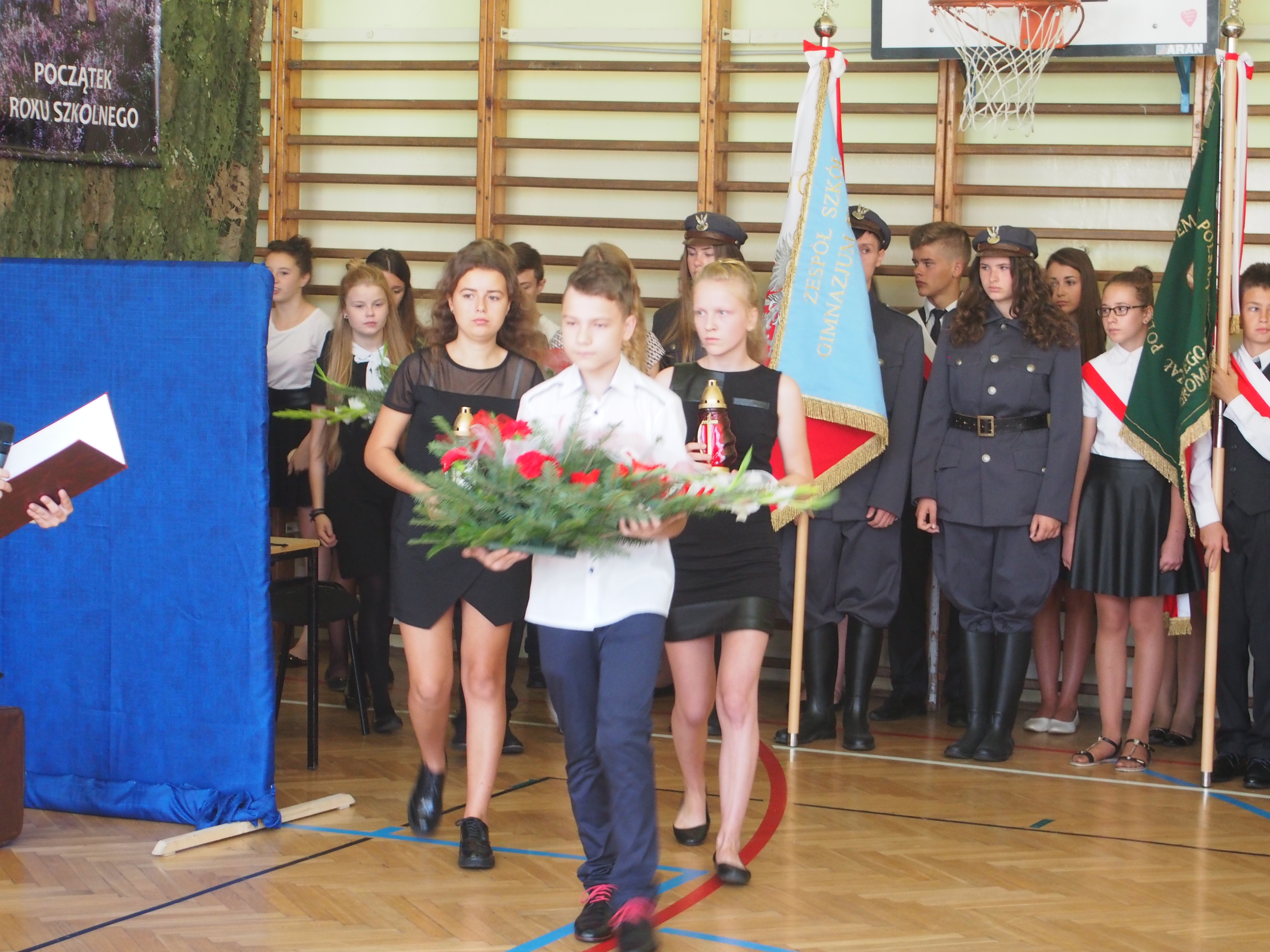 Pierwszy dzwonek zabrzmiał tym razem w czwartkowy poranek. Rok Szkolny 2016/2017 tradycyjnie rozpoczęliśmy 1 września mszą św. w kościele parafialnym, następnie w asyście pocztów sztandarowych udaliśmy się do budynku szkoły. Uroczysty moment złożenia kwiatów pod tablicami pamiątkowymi w tym roku niestety miał również swój smutny wydźwięk. Jedna z wiązanek trafiła na grób ucznia Krzysztofa Gierackiego, który zmarł tragicznie podczas wakacji. Nie bez powodu więc właśnie na bezpieczeństwo w szkole i poza nią szczególny nacisk położyła dyrektor Zespołu Szkół w Gromniku p. Ewa Białkowska w inauguracyjnym przemówieniu.