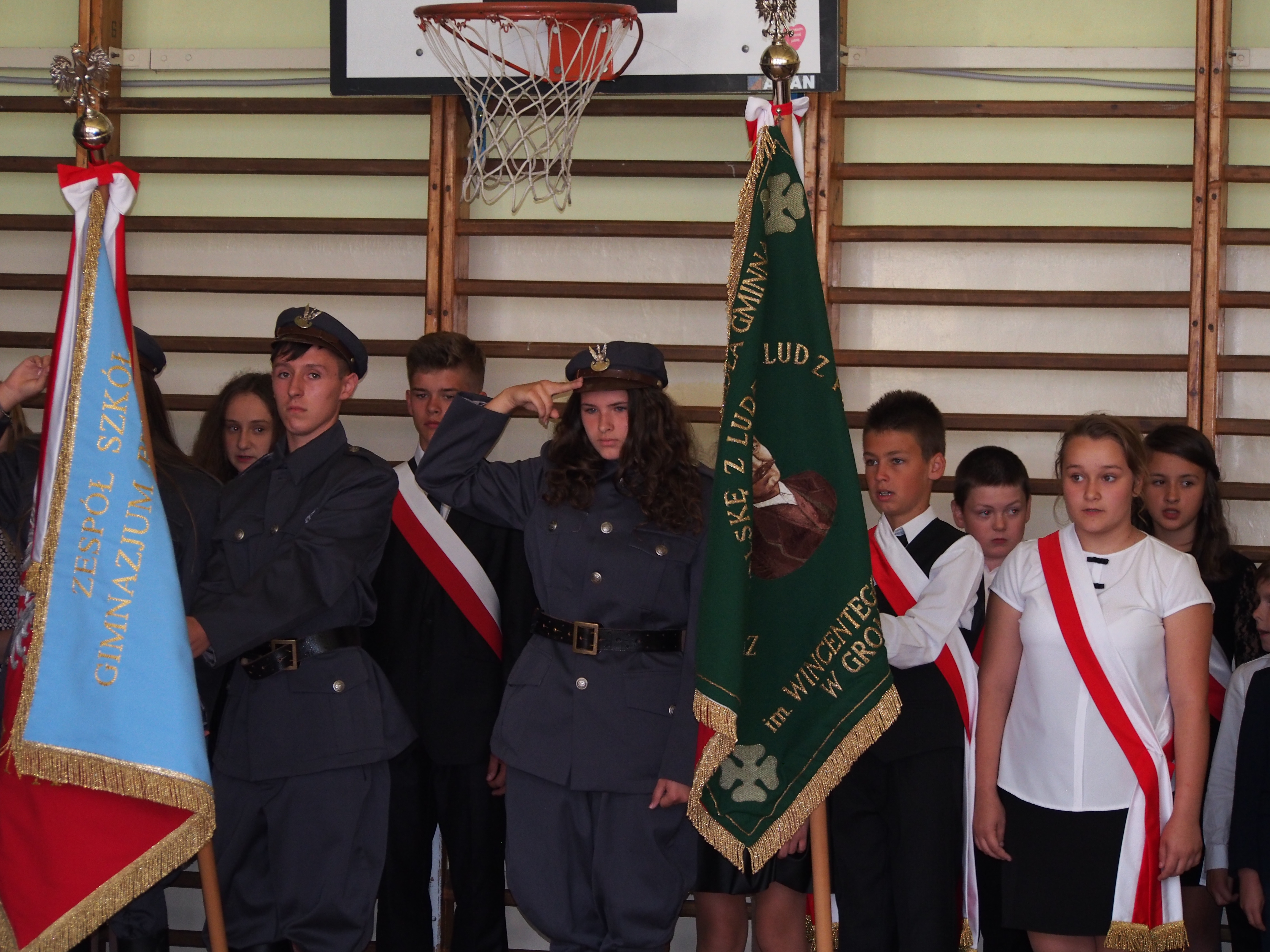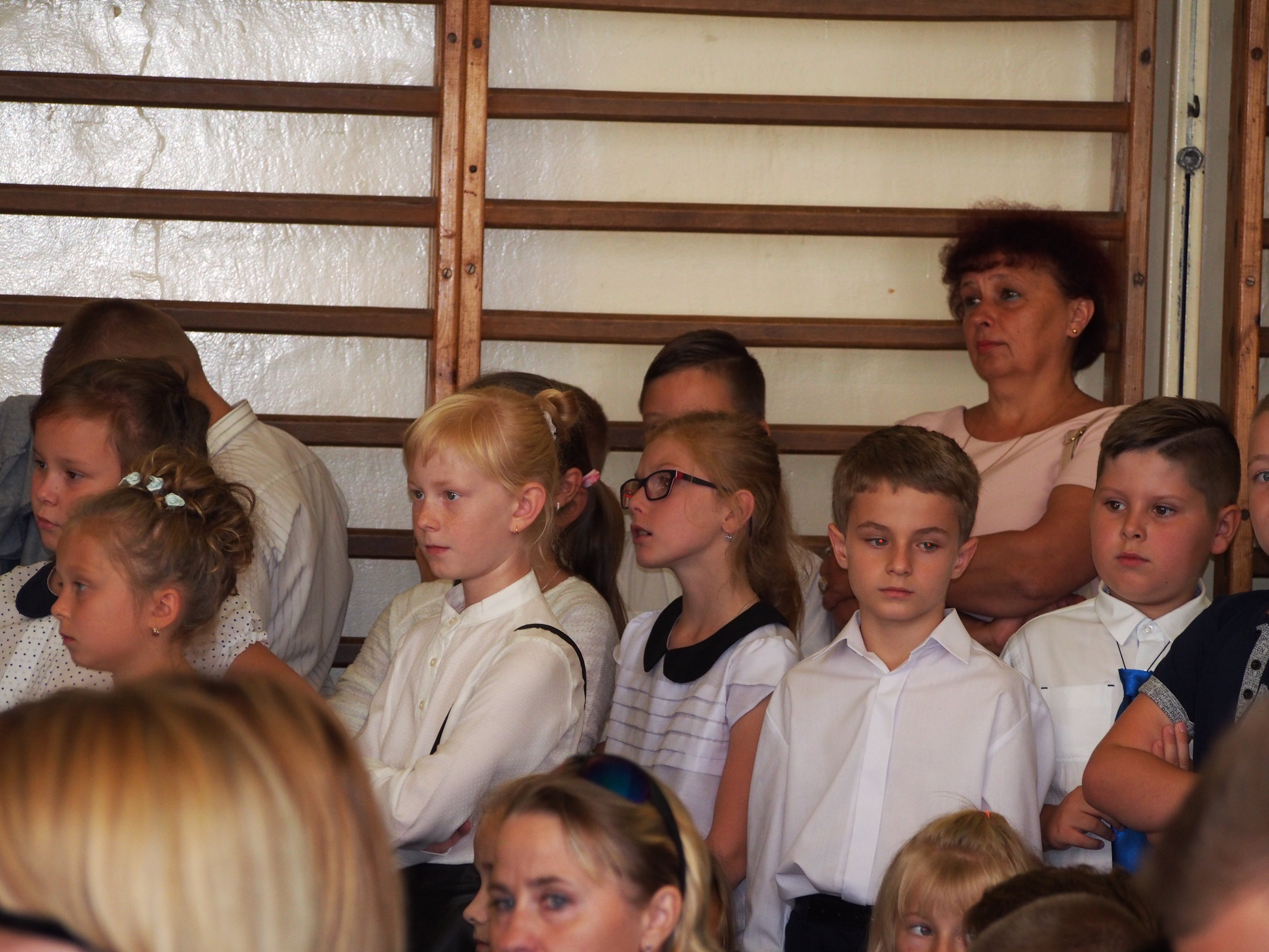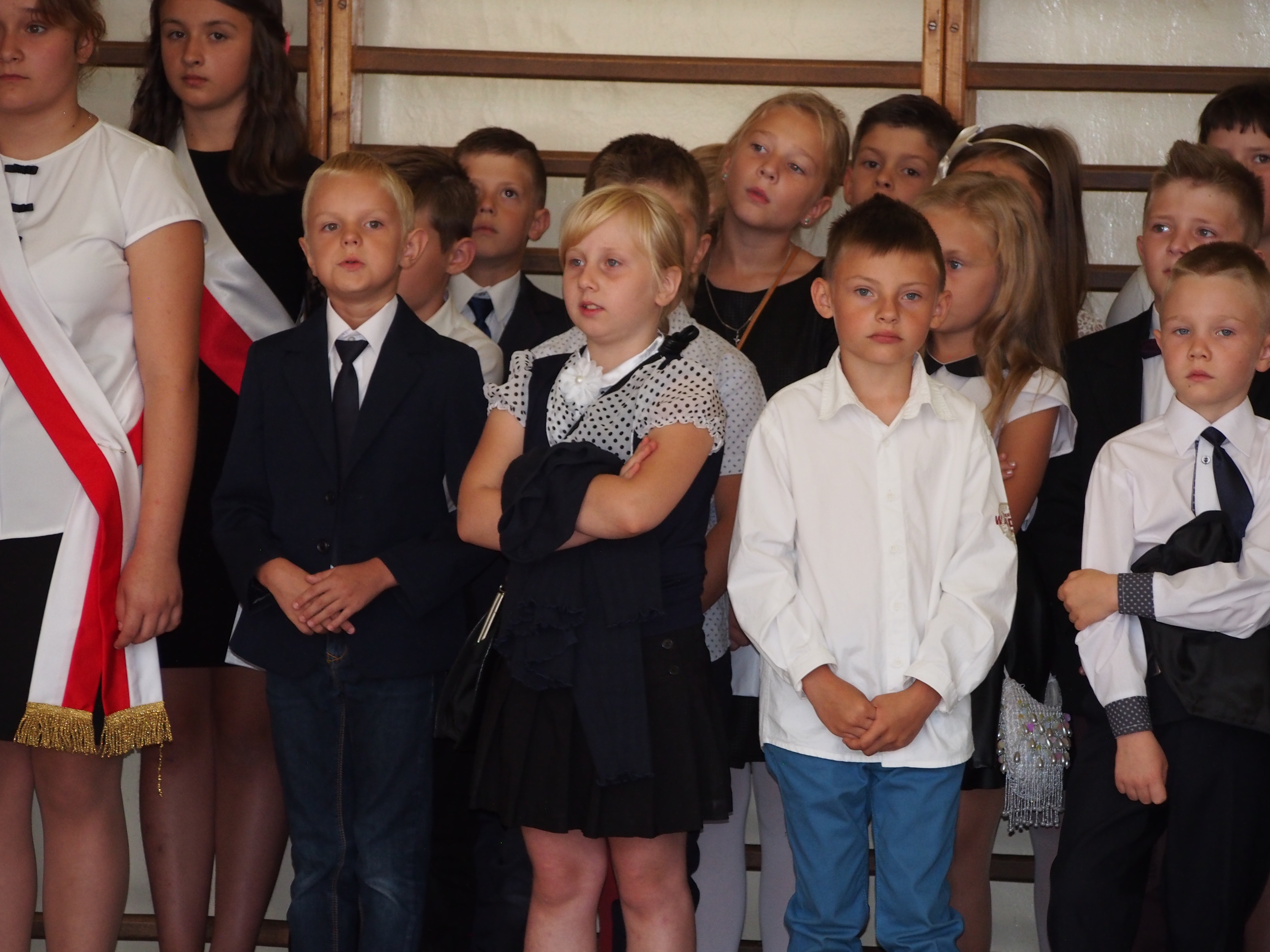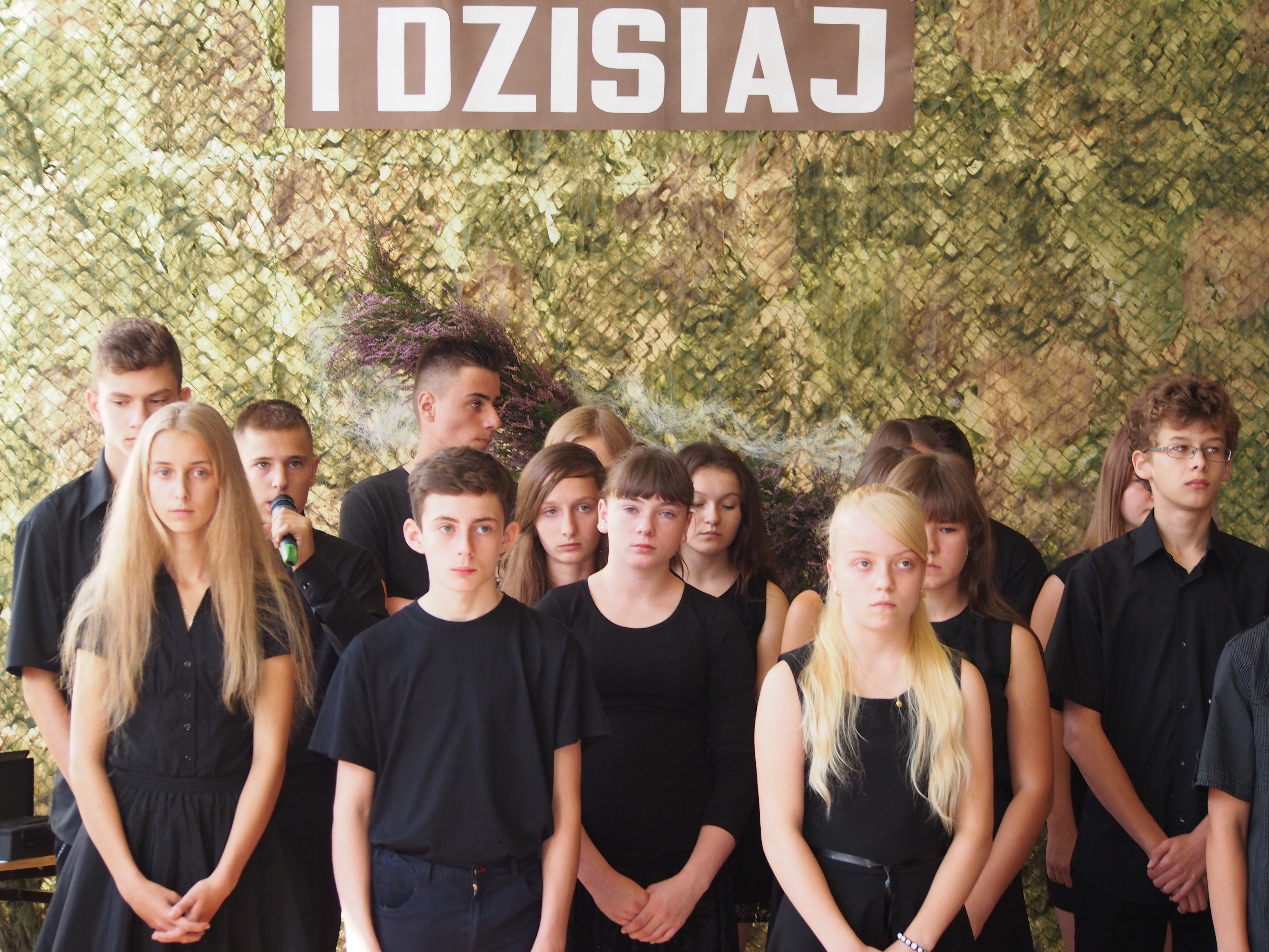 Uczniowie, rodzice, zaproszeni goście oraz dyrekcja i nauczyciele w skupieniu wysłuchali programu artystyczno – patriotycznego nawiązującego do 77. rocznicy wybuchu II wojny światowej. Występ przygotowały klasy II gimnazjum pod kierunkiem wychowawców – Ewy Wajdy, Haliny Kras i Agnieszki Stachoń. Niespodzianką było wręczenie przez goszczącego na uroczystości wicestarostę tarnowskiego p. Zbigniewa Karcińskiego plecaków – wyprawek szkolnych. Otrzymali je wylosowani uczniowie szkoły podstawowej i gimnazjum.