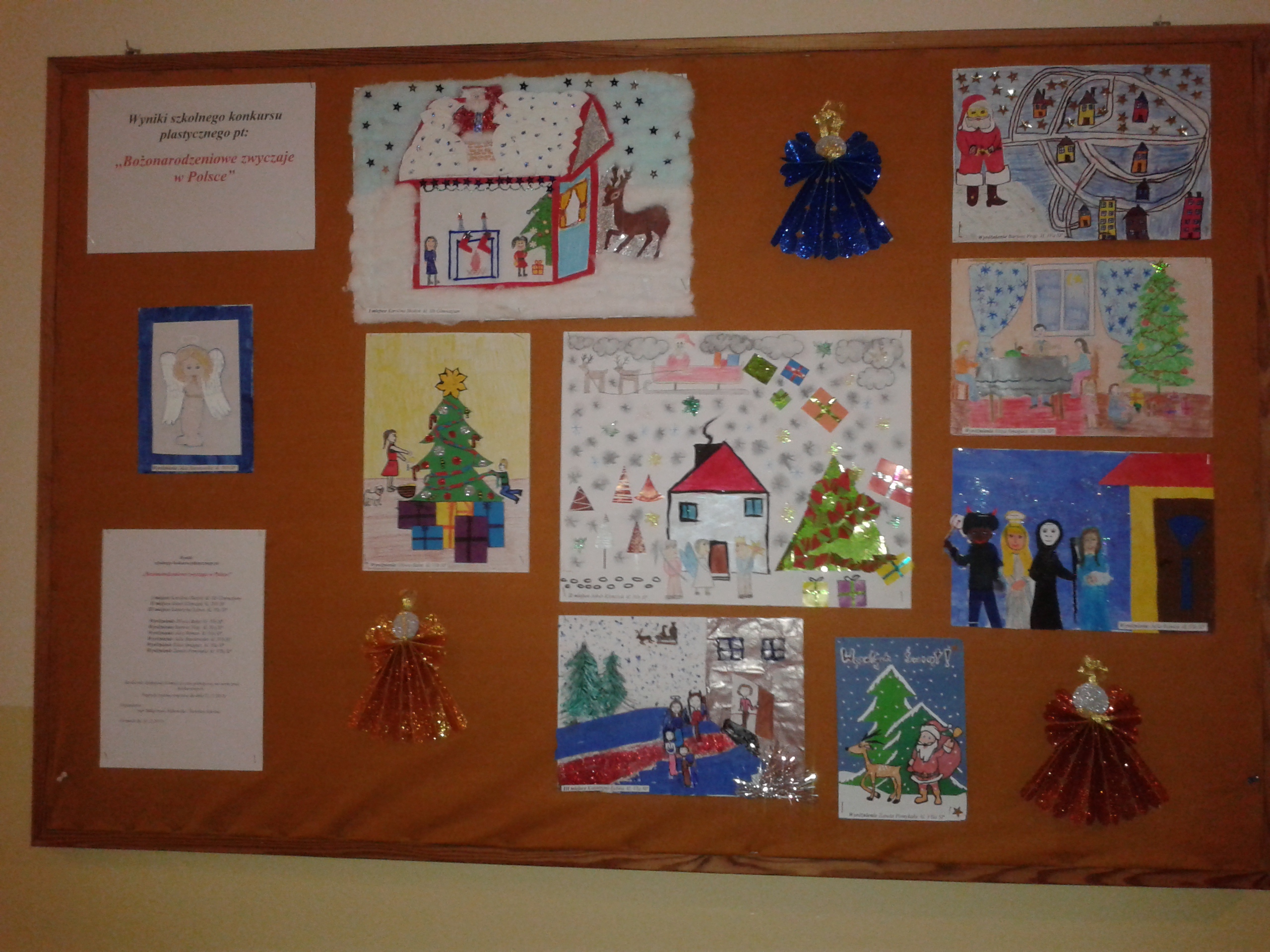 Szkolny konkurs plastyczny pt: Bożonarodzeniowe zwyczaje w Polsce został zorganizowany przez opiekuna artystycznego Małgorzatę Miłkowską i Świetlicę Szkolną w ZS w Gromniku.