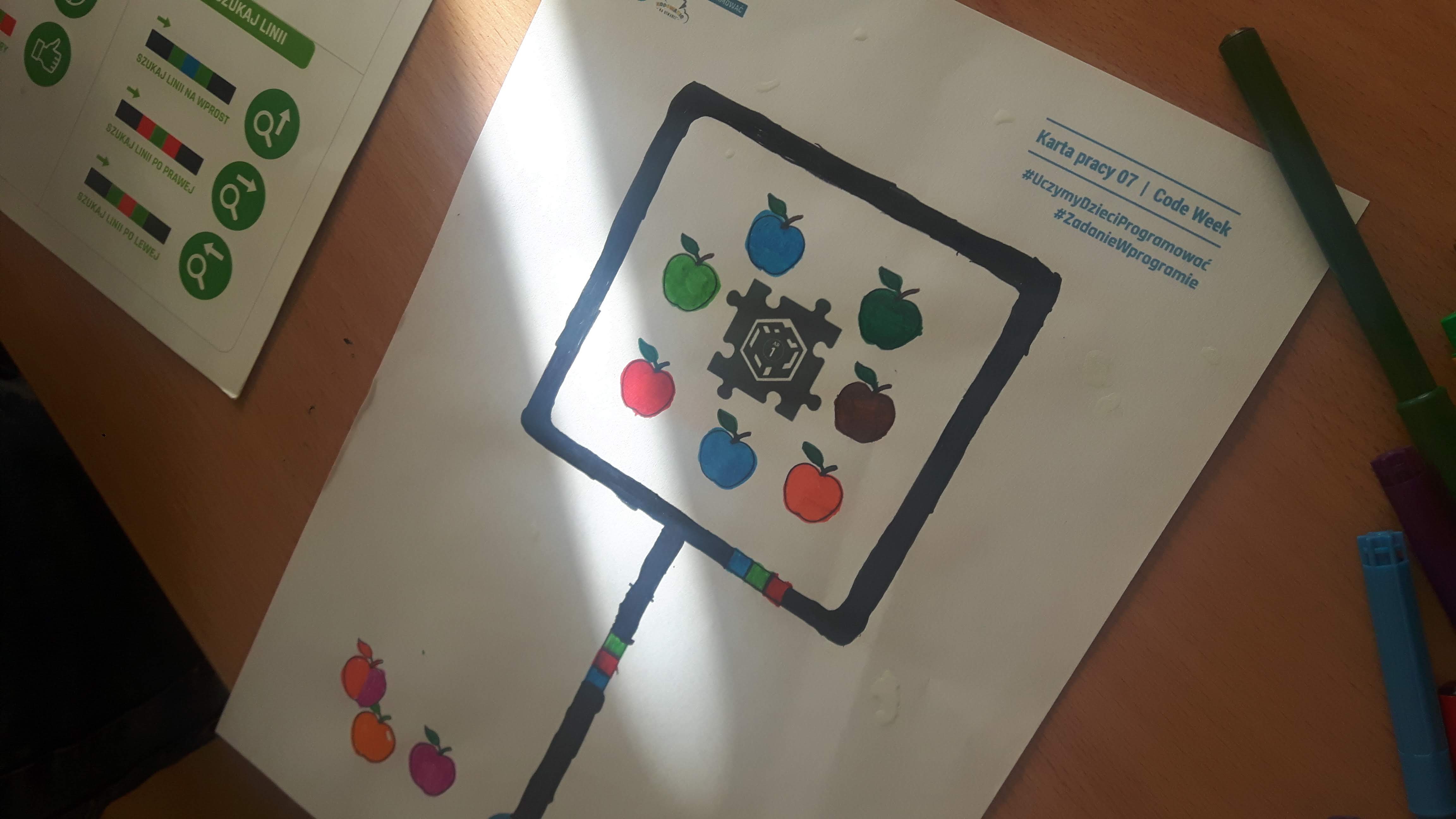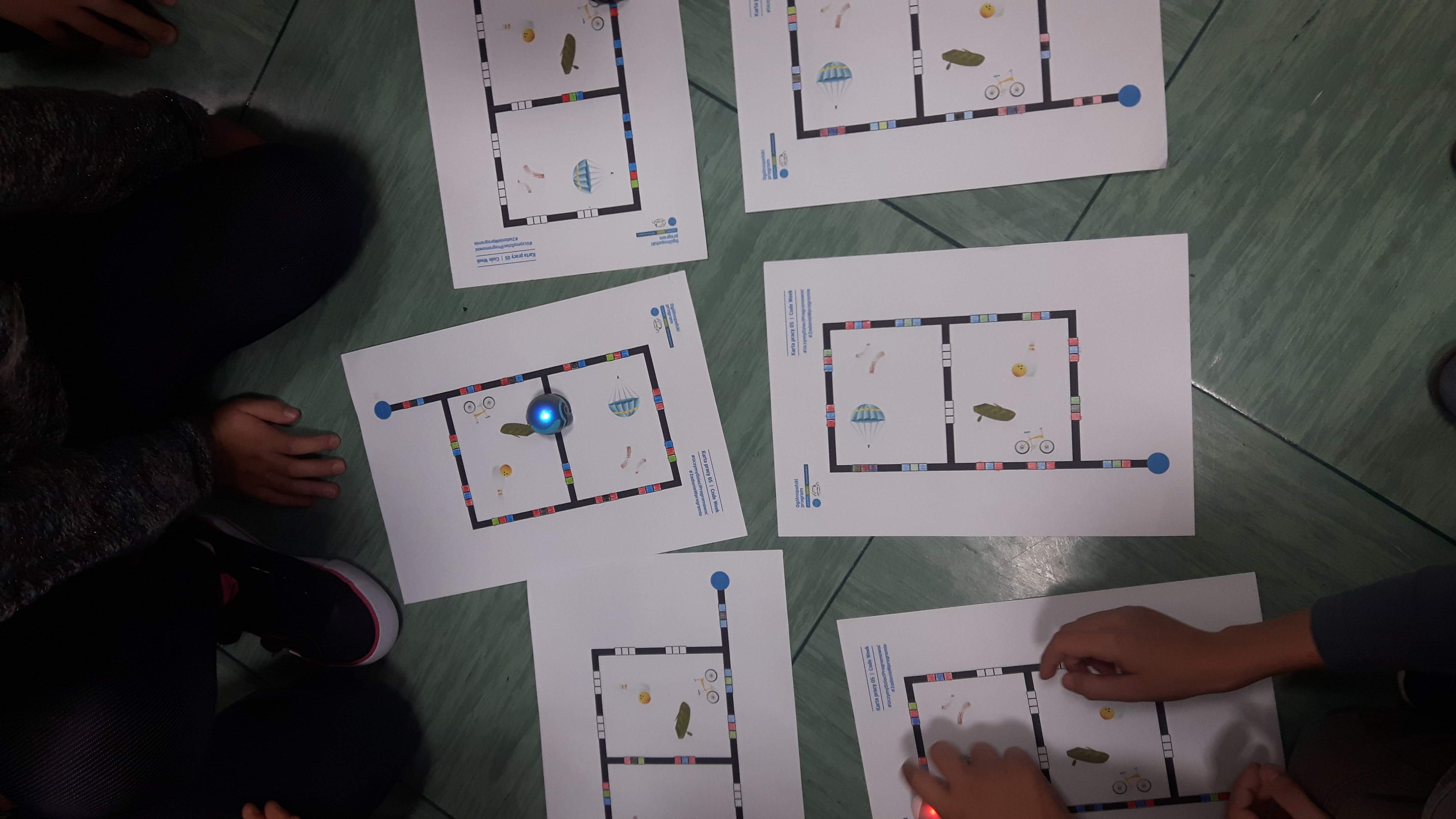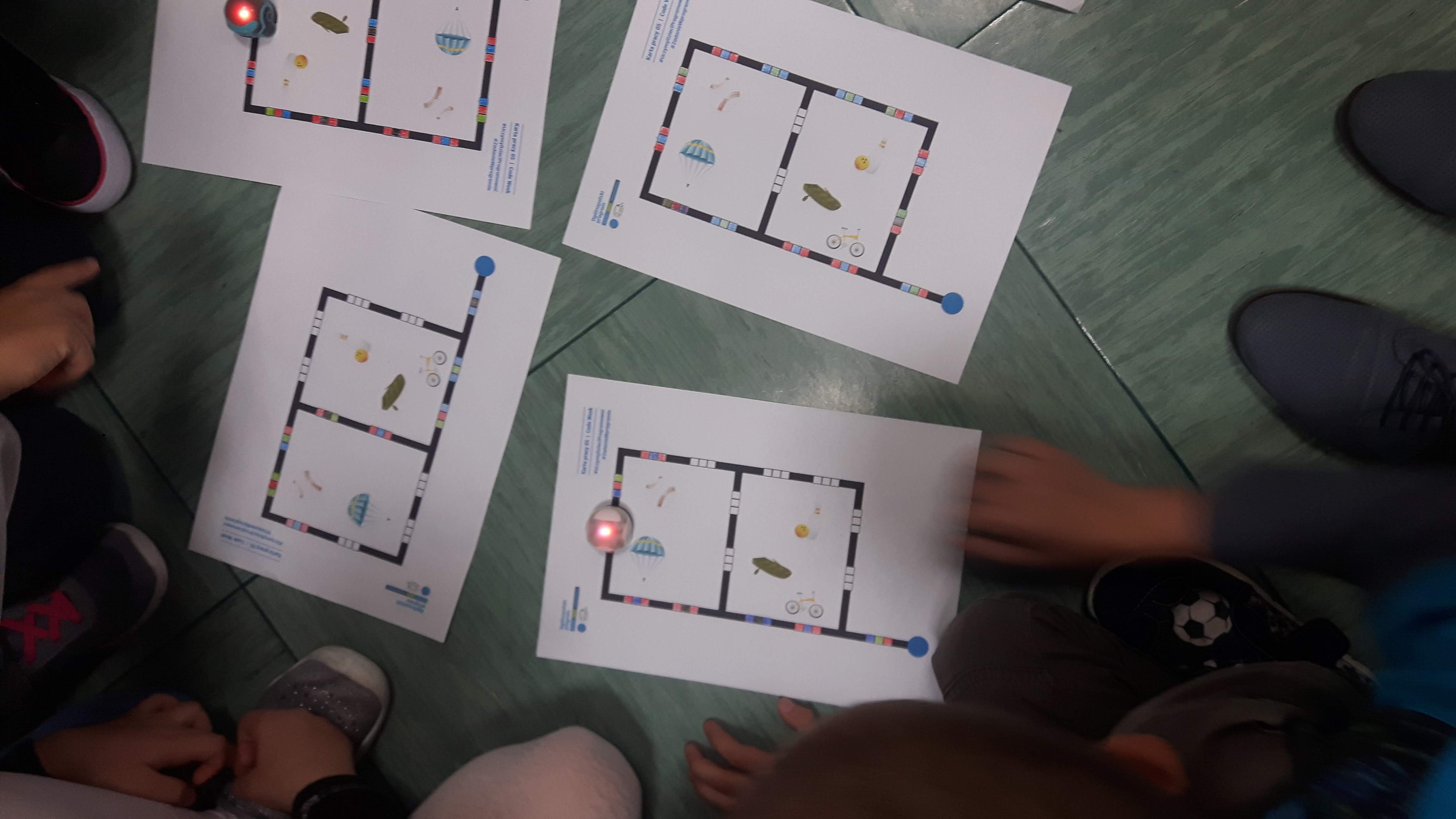 Opowiadaliśmy o inicjatywie Code Week, odszukaliśmy stronę z zarejestrowanymi wydarzeniami. Uczniowie realizując zadania otrzymywali karty pracy i w grupach rysowali trasy dla ozobota. Tworzyli swoje matematyczne gry, uruchomili też wyobraźnię wykonując zakodowane ilustracje do bajek. Dowiedzieli się co to jest rozszerzona rzeczywistość pracując z aplikacjami Puzzle AR oraz Scottie Go. Tajniki kodowania przybliżył im też Duszek w programie Scratch.