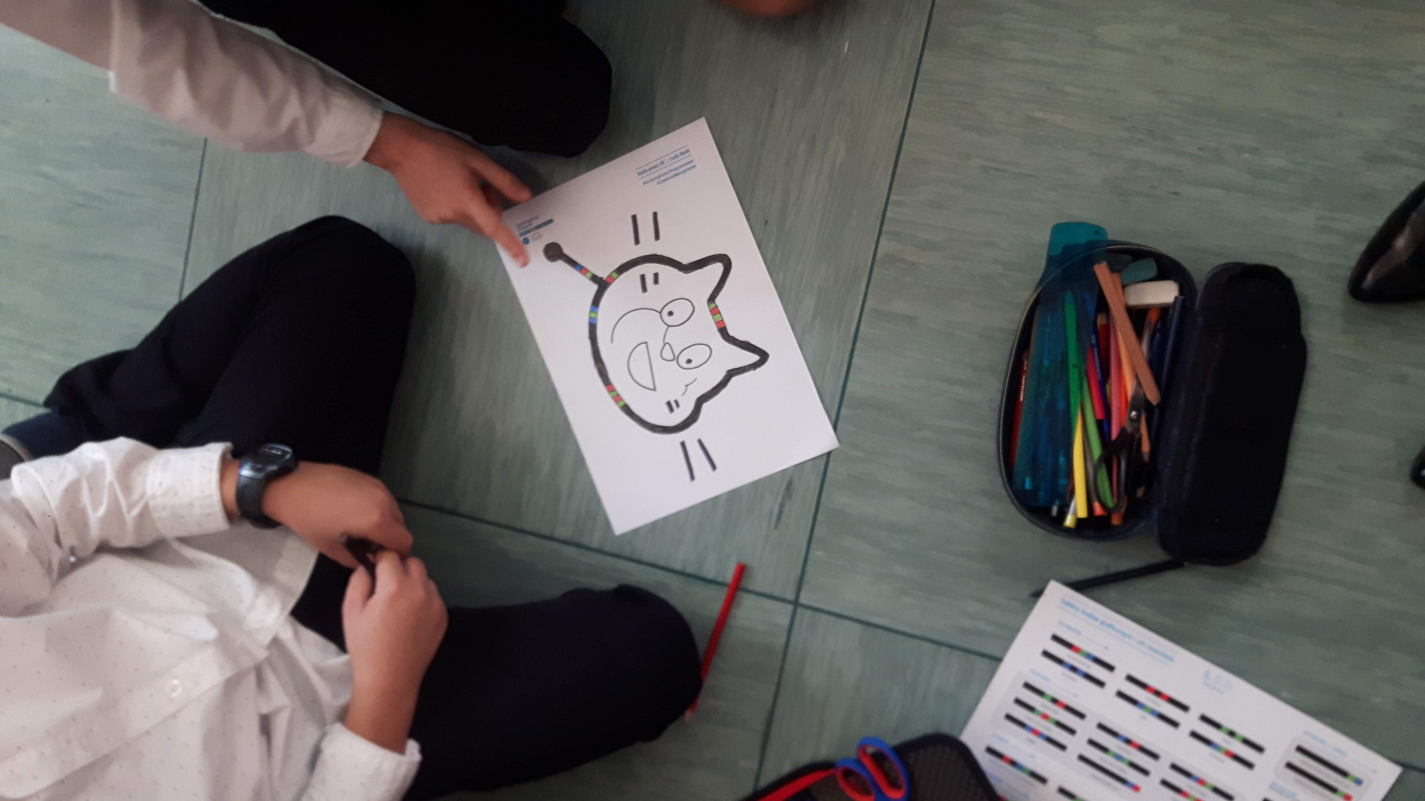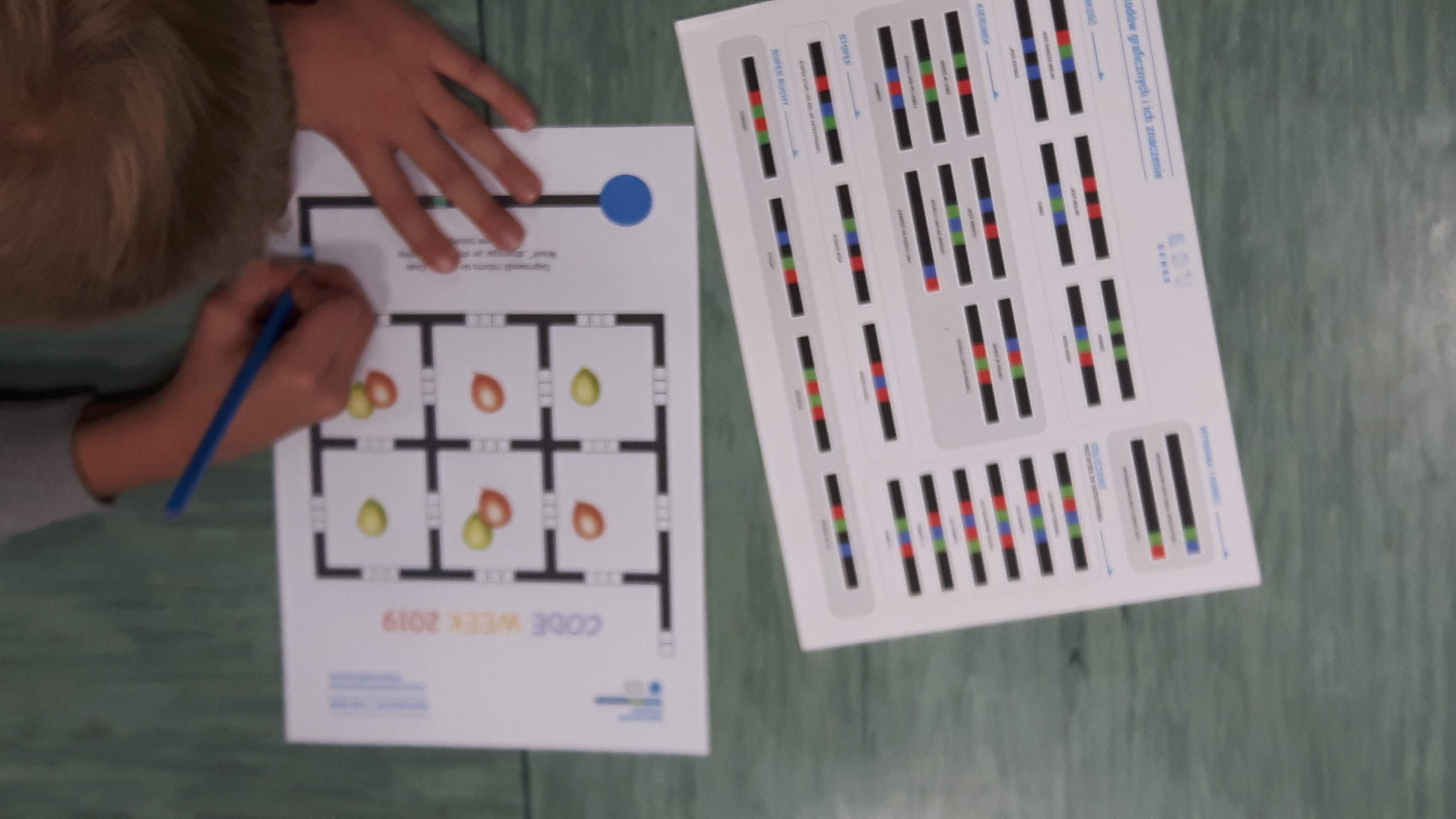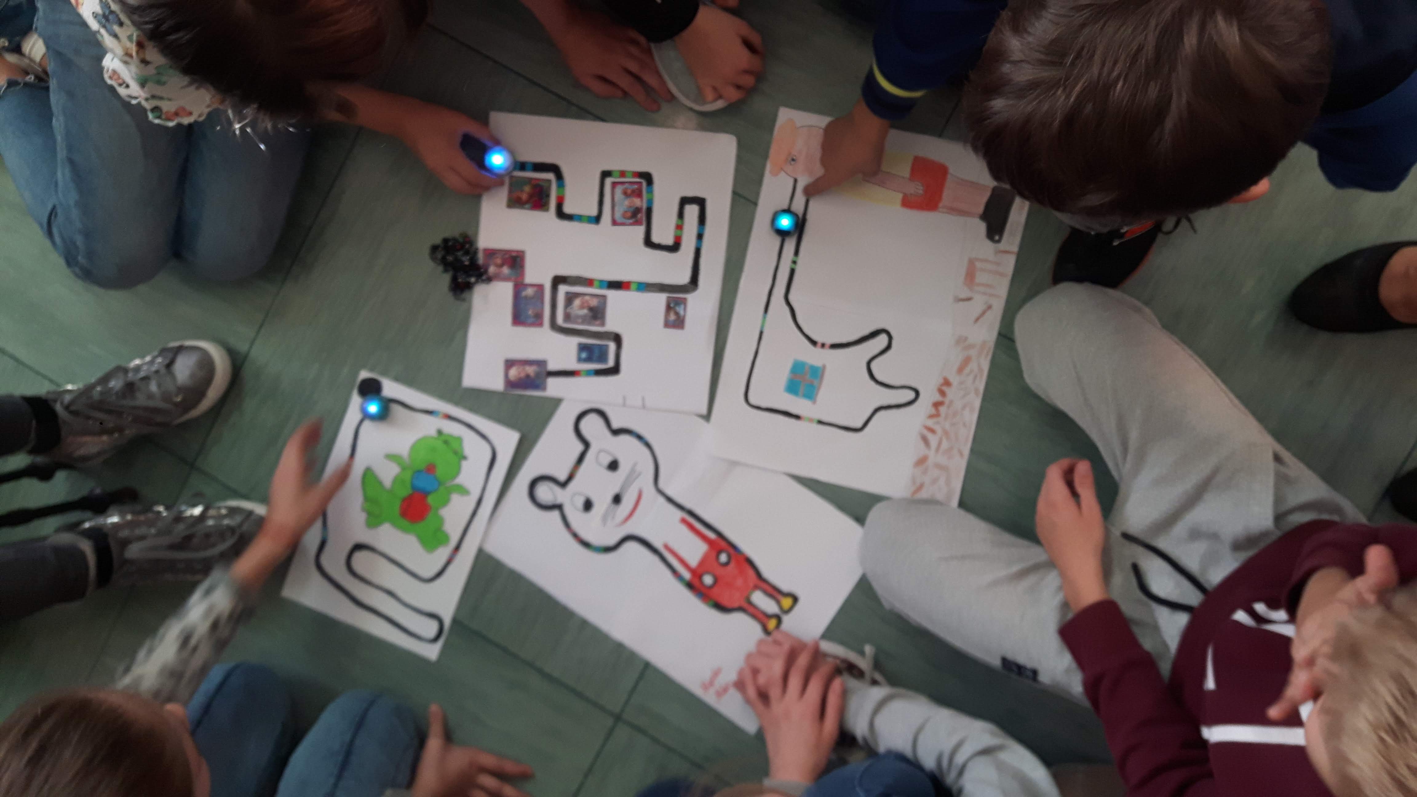 Opowiadaliśmy o inicjatywie Code Week, odszukaliśmy stronę z zarejestrowanymi wydarzeniami. Uczniowie realizując zadania otrzymywali karty pracy i w grupach rysowali trasy dla ozobota. Tworzyli swoje matematyczne gry, uruchomili też wyobraźnię wykonując zakodowane ilustracje do bajek. Dowiedzieli się co to jest rozszerzona rzeczywistość pracując z aplikacjami Puzzle AR oraz Scottie Go. Tajniki kodowania przybliżył im też Duszek w programie Scratch.