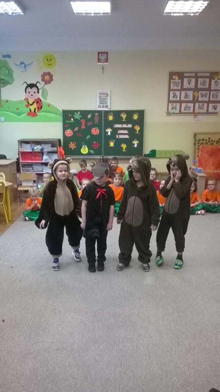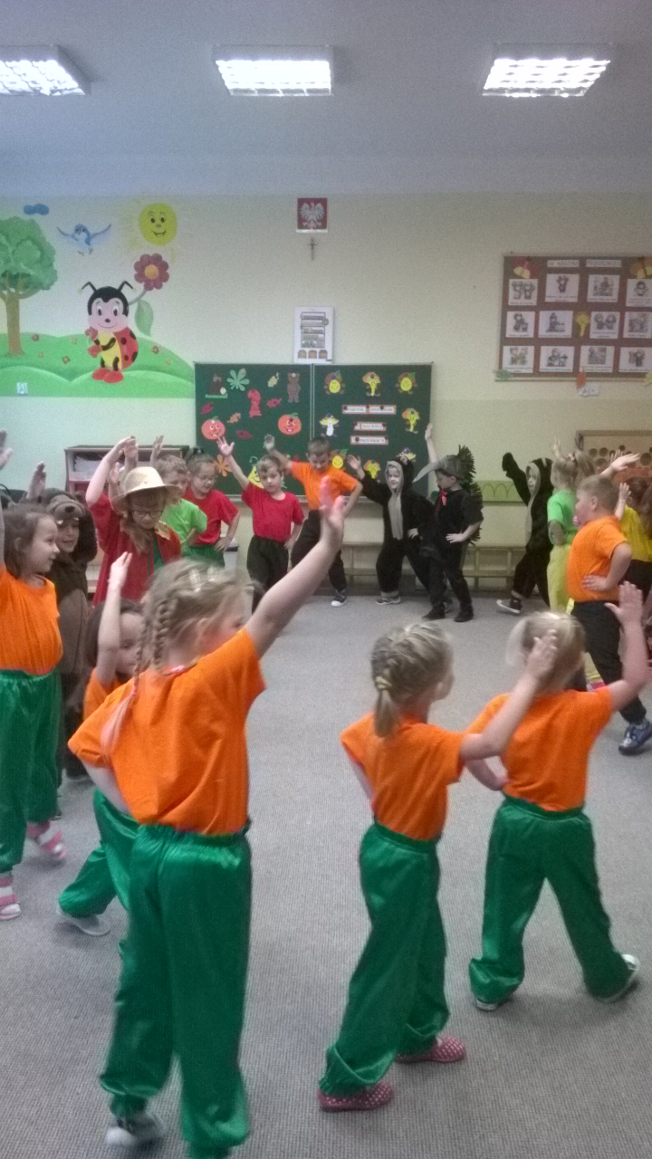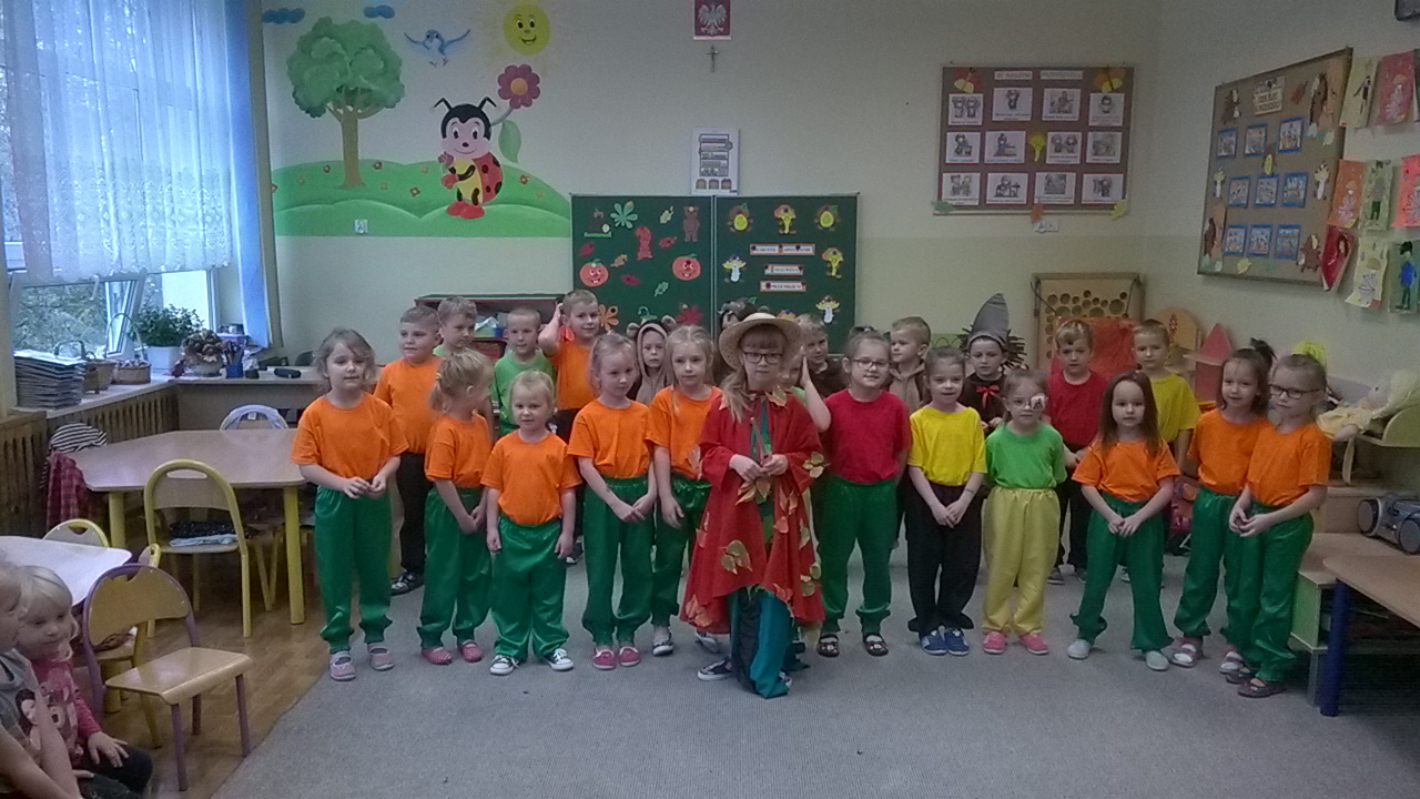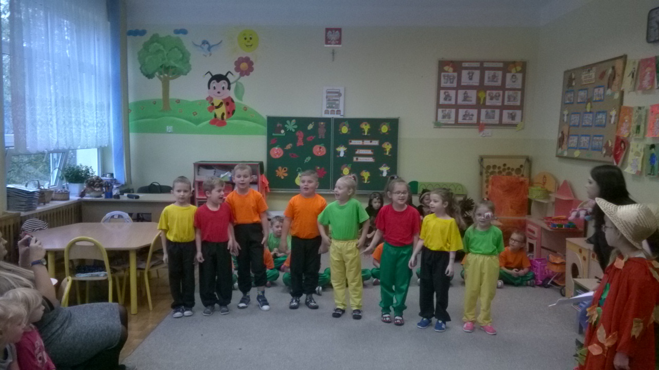Przedszkolaki przygotowały dla swoich niecodziennych gości nie tylko przepiękne przedstawienie związane z aktualną porą roku czyli jesienią, ale i też zaprezentowały ciekawe tańce oraz gry i zabawy ruchowe. Maluchy zachwycały nie tylko swoimi zdolnościami tanecznymi i aktorskimi, ale przede wszystkim swoim taktem, naturalną szczerością i kreatywnością, tak charakterystyczną zresztą dla małych dzieci. Spotkanie odbyło się w bardzo przyjaznej atmosferze oraz w otoczeniu bajecznie udekorowanych sal przedszkola.