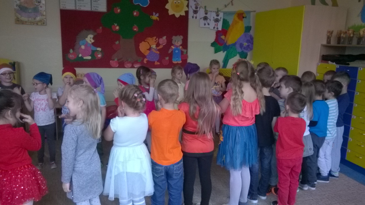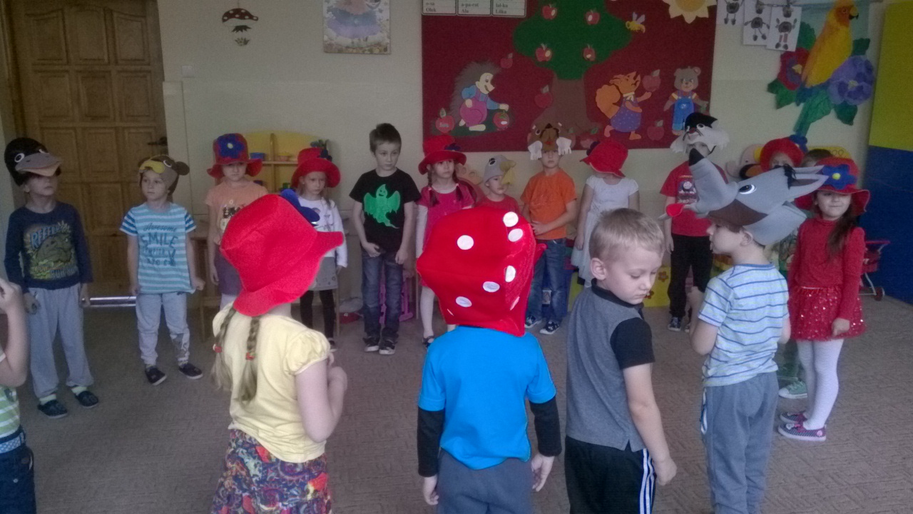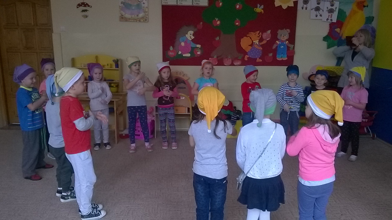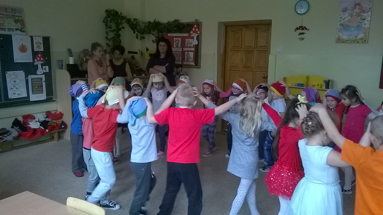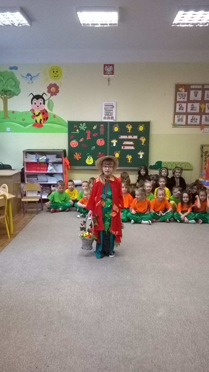 Przedszkolaki przygotowały dla swoich niecodziennych gości nie tylko przepiękne przedstawienie związane z aktualną porą roku czyli jesienią, ale i też zaprezentowały ciekawe tańce oraz gry i zabawy ruchowe. Maluchy zachwycały nie tylko swoimi zdolnościami tanecznymi i aktorskimi, ale przede wszystkim swoim taktem, naturalną szczerością i kreatywnością, tak charakterystyczną zresztą dla małych dzieci. Spotkanie odbyło się w bardzo przyjaznej atmosferze oraz w otoczeniu bajecznie udekorowanych sal przedszkola.