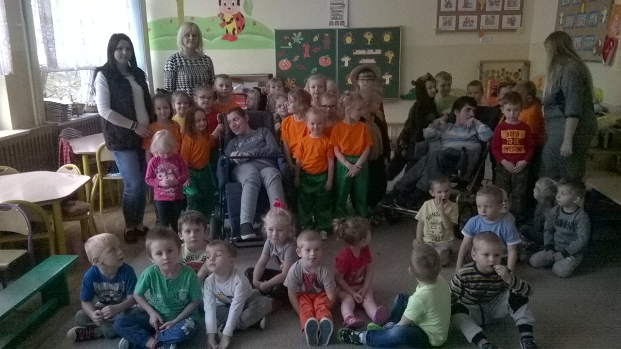 W myśl zasady „Pomagając innym, pomagasz również sobie” w dniu 25 października 2017 roku odbyło się (już po raz kolejny zresztą) spotkanie dwójki niepełnosprawnych uczniów- Malwiny i Przemka z dziećmi 3-,4-,5- i 6 – letnimi w Przedszkolu w Gromniku. Malwina i Przemek przyjęli z wielką ochotą zaproszenie do przedszkola, gdyż są bardzo otwarci na kontakty z innymi, a ponadto pochodzą z rodziny wielodzietnej oraz systematycznie i chętnie uczestniczą już od wielu lat we wszystkich możliwych spotkaniach zarówno z dziećmi pełnosprawnymi, jak i niepełnosprawnymi z terenu Gminy Gromnik. Ogromna w tym zasługa całej ich rodziny.