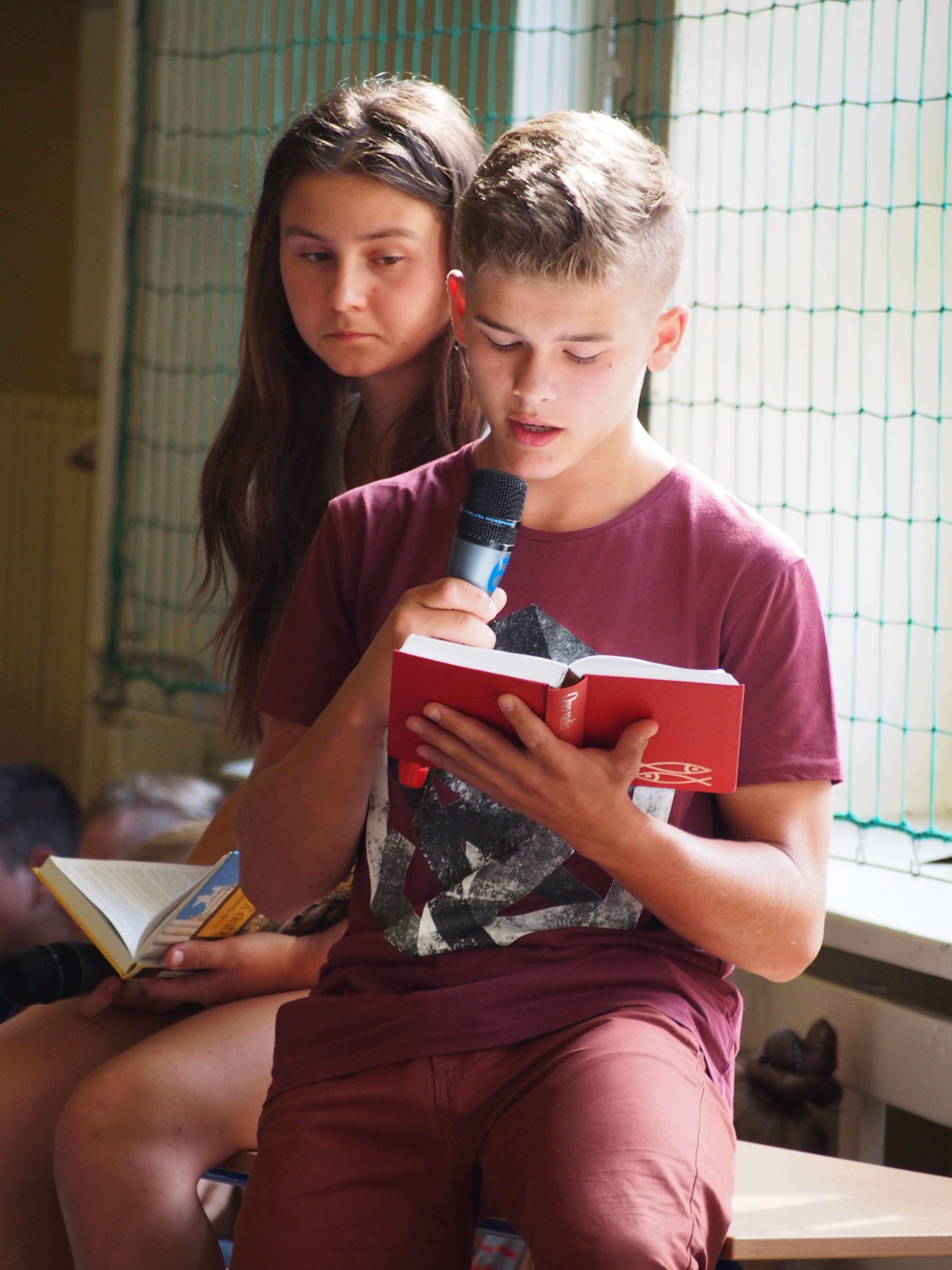 Czytanie rozpoczęła p. dyrektor Ewa Białkowska, a zakończył epilogiem wicedyrektor p. T. Baran. Wzór pięknego czytania oraz popis własnej interpretacji dzieła dali także: p. Marek Polak, p. Anna Cudek, ks. Piotr Siemek, a przede wszystkim młodzi czytelnicy: Agnieszka Włudyka i Natalia Gaj z kl. 3a, Marcin Bąk i Klaudia Gucwa z kl. 3b, Aleksandra Wadoń i Weronika Sterkowicz z kl. IIIc, Wiktor Marszałek i Weronika Sówka z kl. IIc, Gabriela Cudek i Sylwia Włudyka z kl. IIb, Andrzej Karciński i Gabriela Baniak z kl. IIa, Szczepan Kwaśny i Magdalena Kierońska  z kl. Ic, Krzysztof Kurdziel i Julia Karnia z kl. Ib, Julia Sanek i Paula Bajorek z kl. Ia oraz Oliwia Żaba i Adrian Wójcik z kl. VIb.