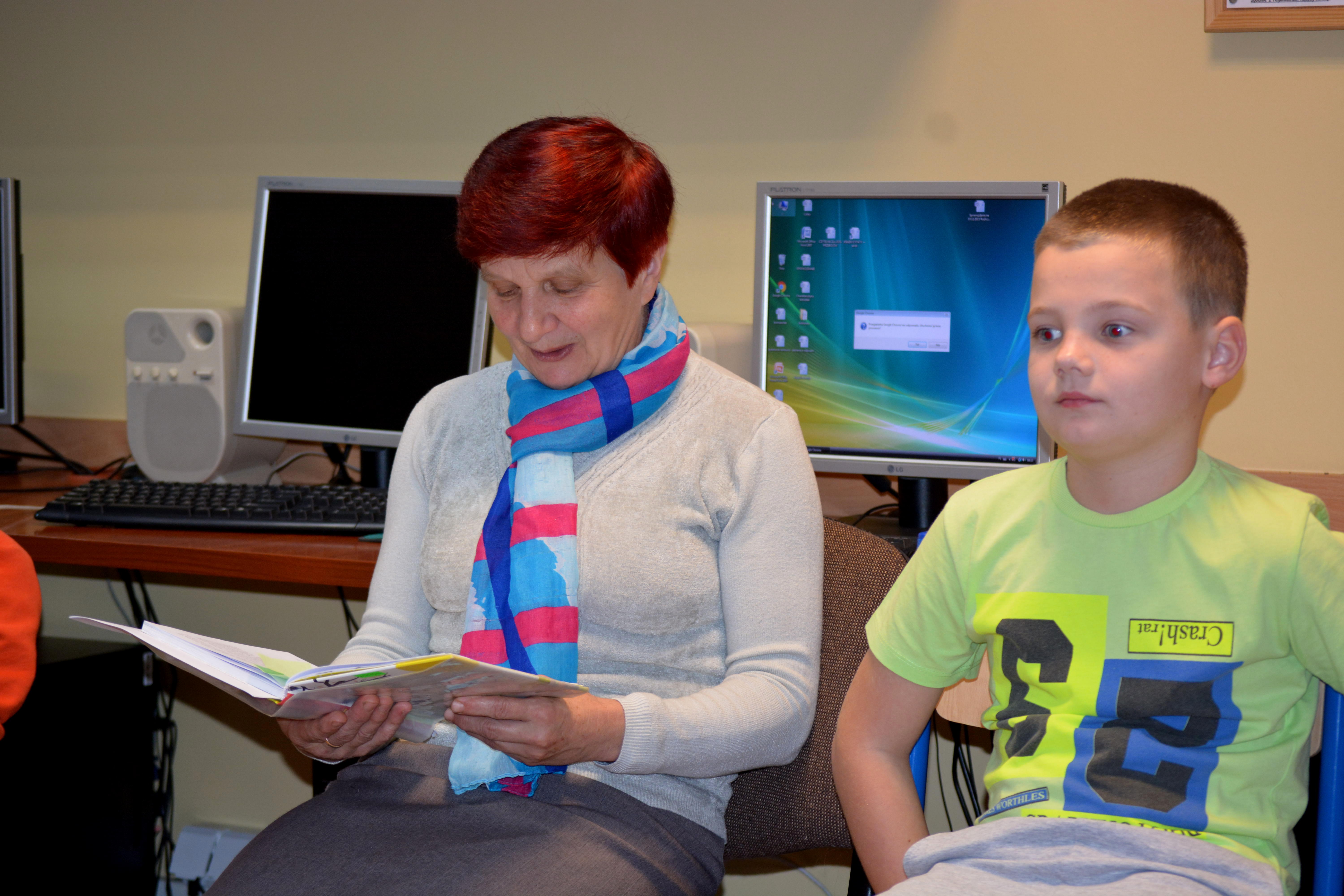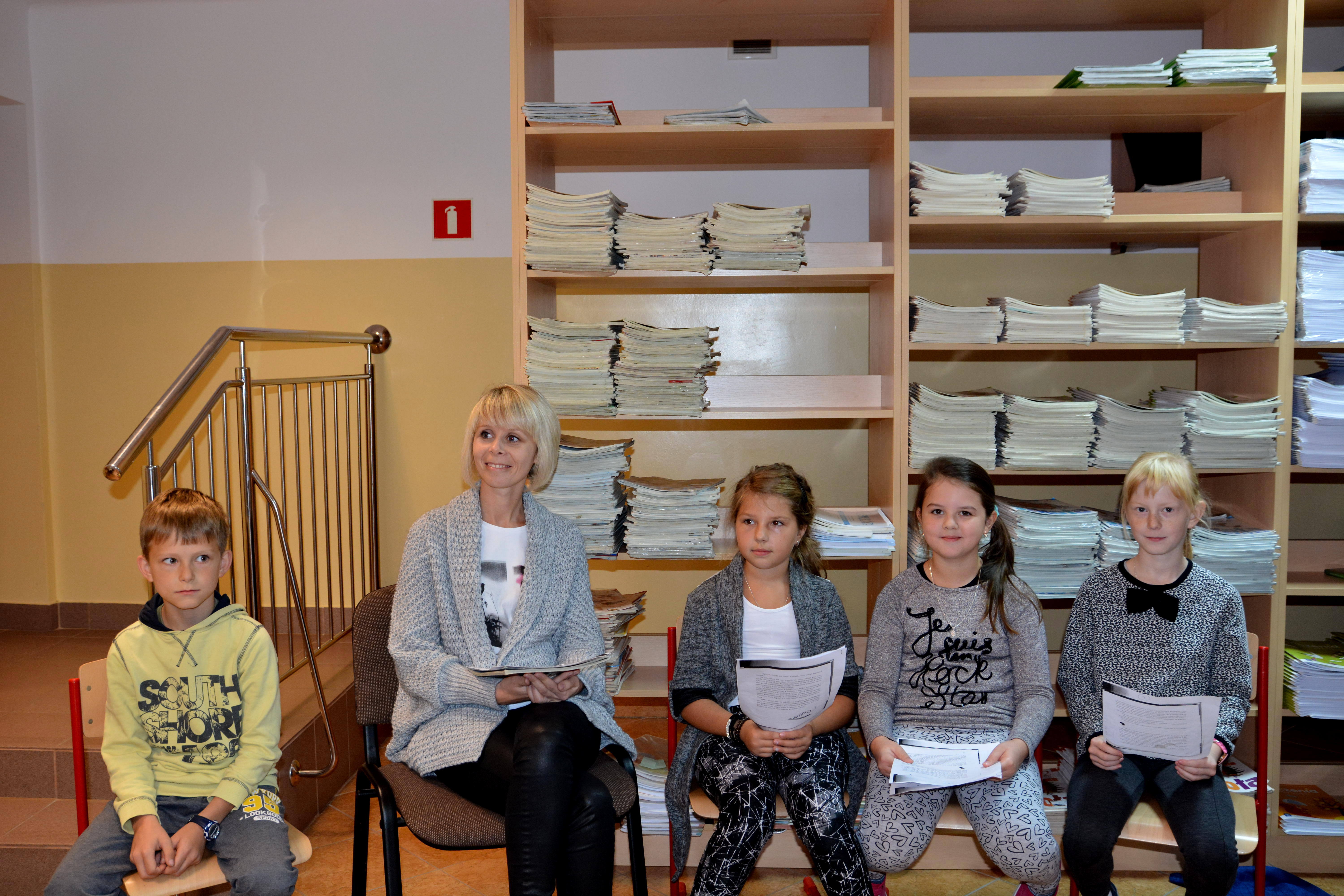 Uczniowie klas drugich i trzecich czytali wspólnie z nauczycielami i zaproszonymi gośćmi: Panią Dyrektor Haliną Karaś, panią Adrianną Laską i panią Martą Kapałką.