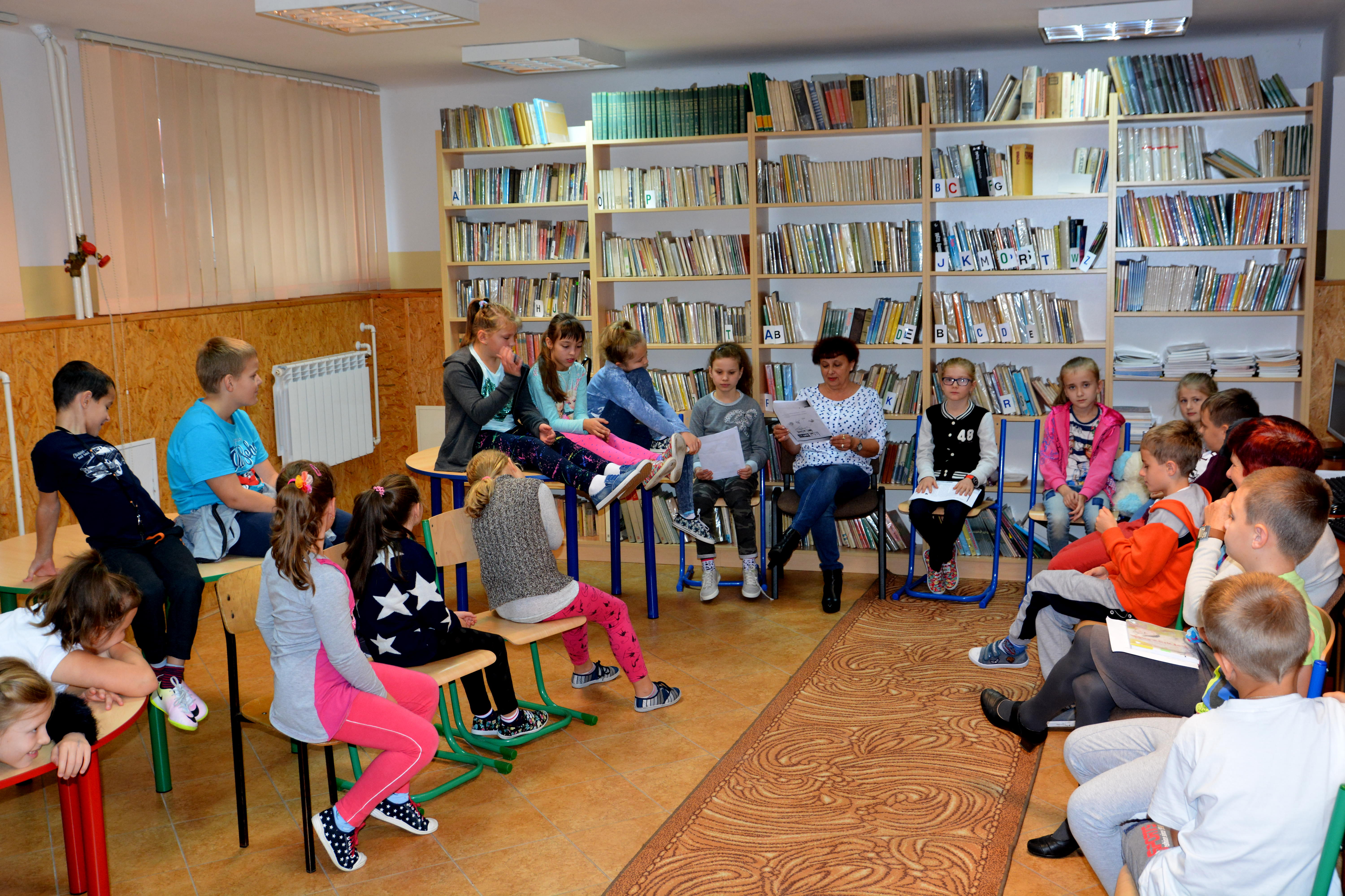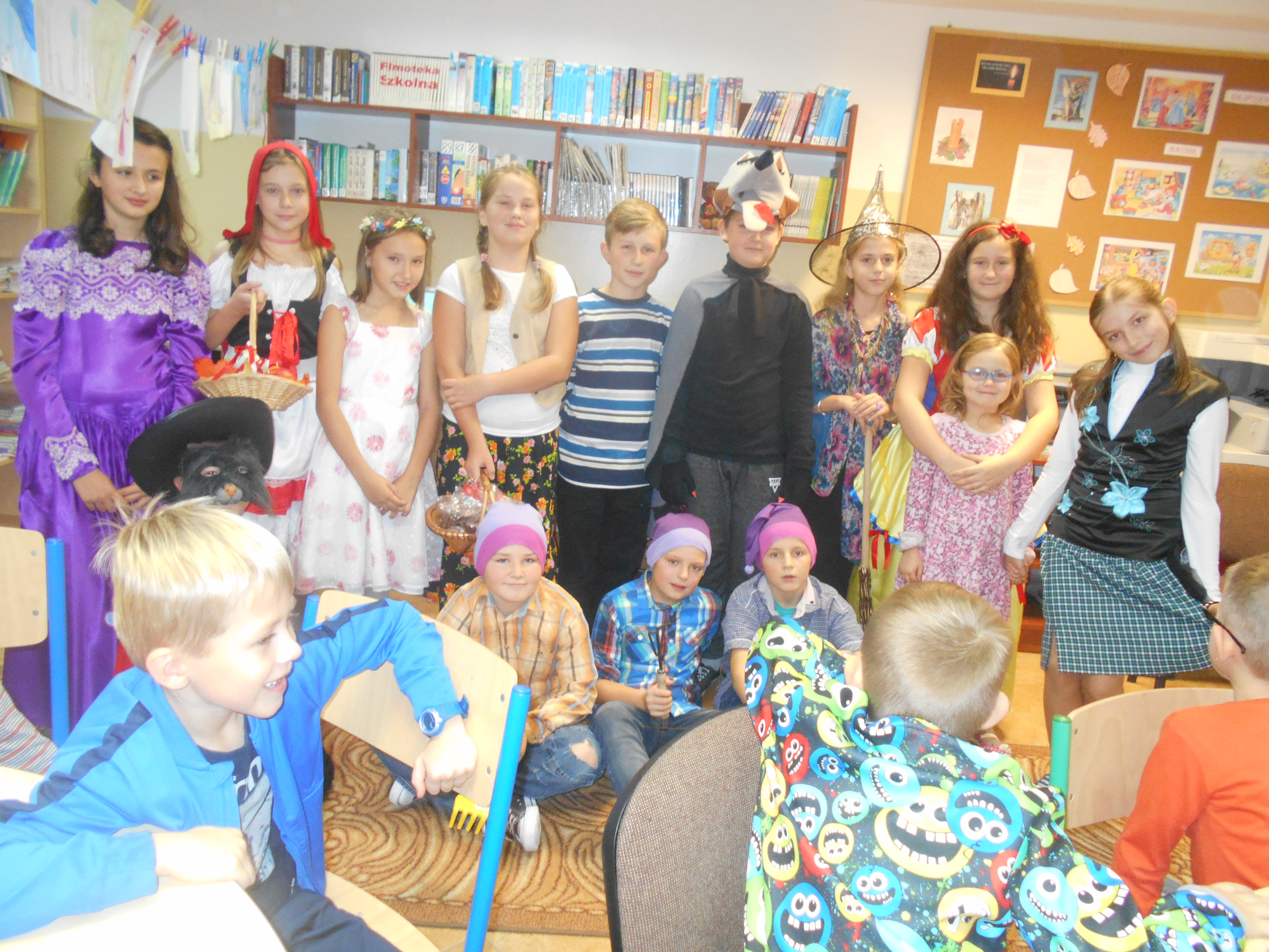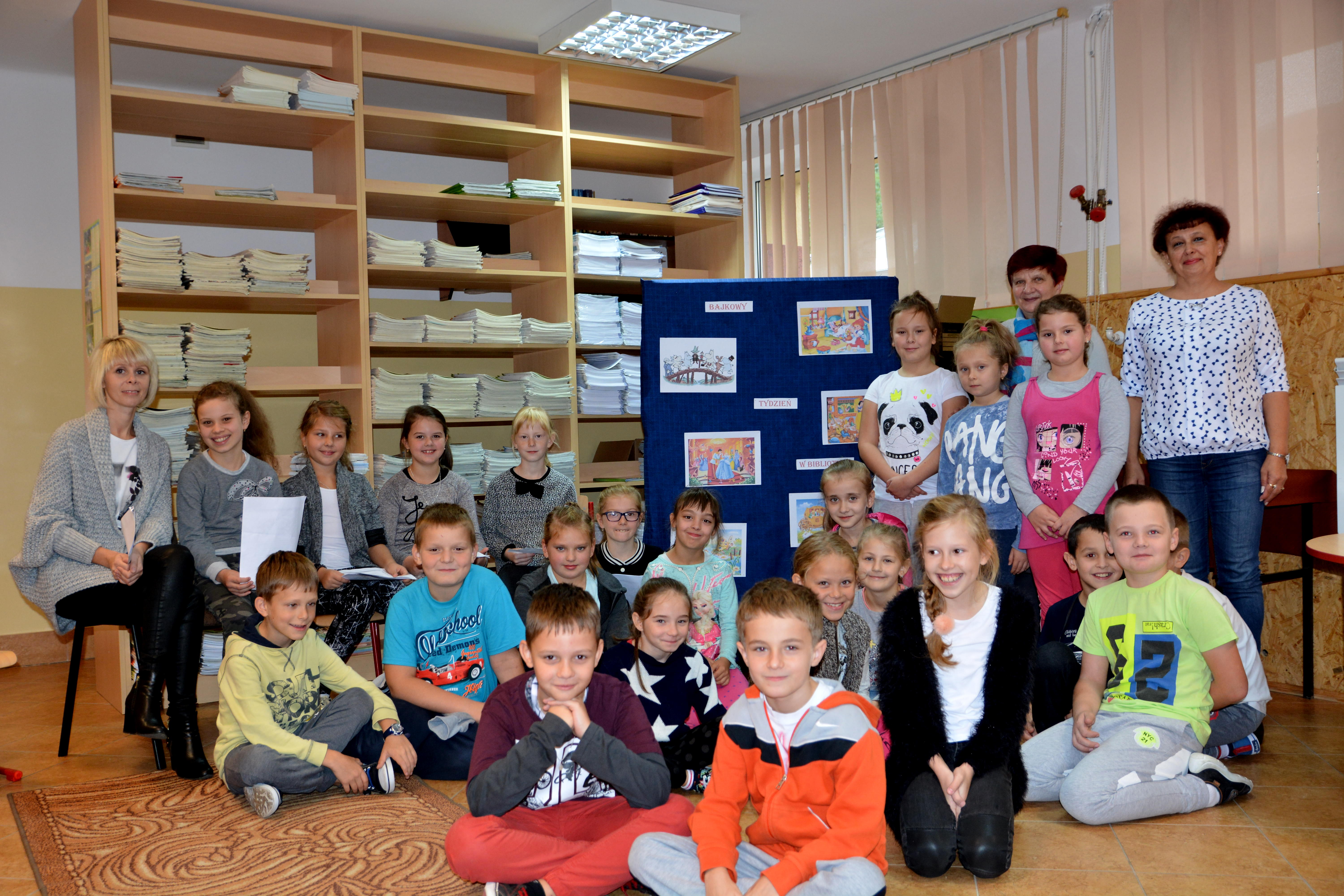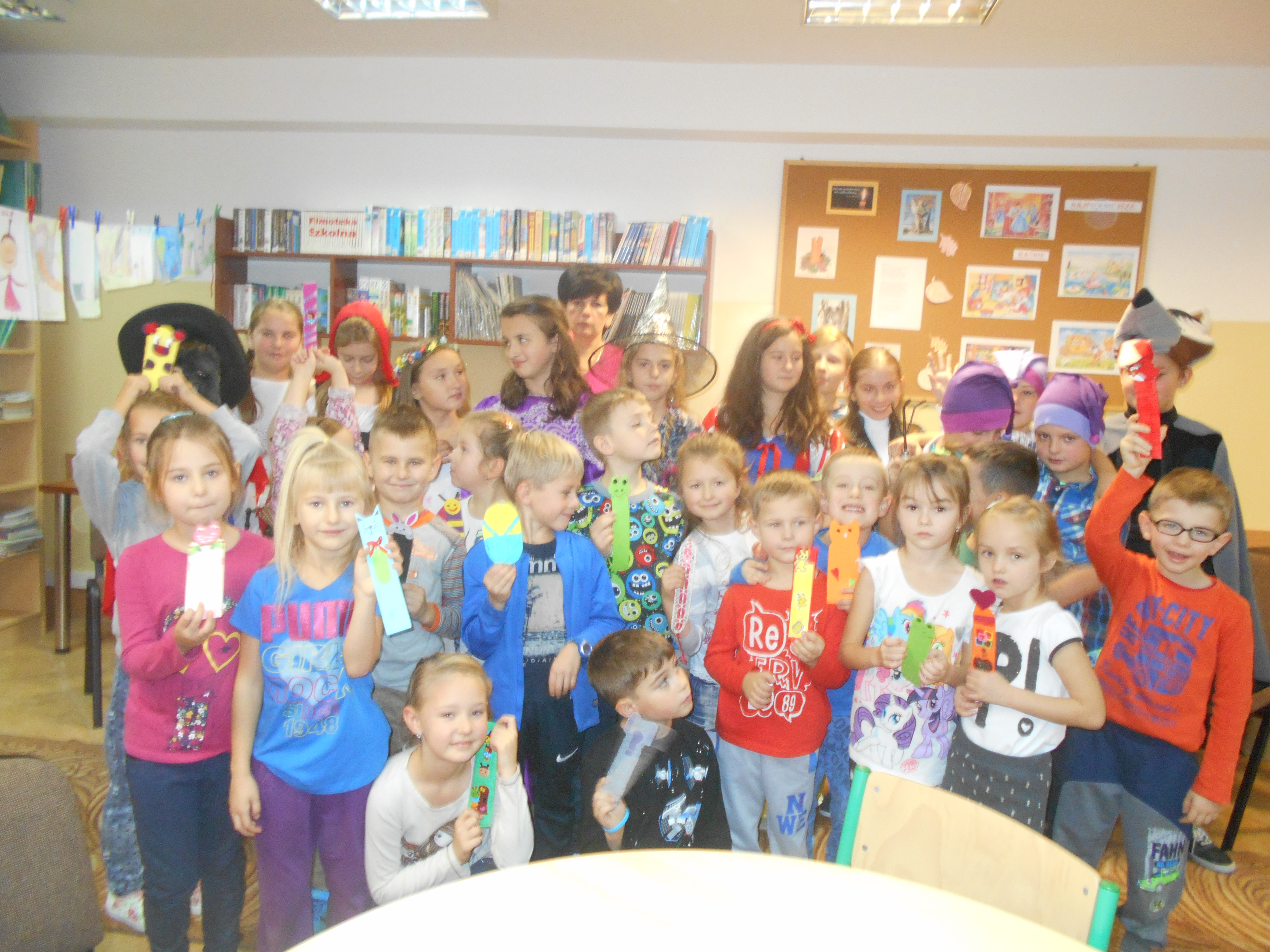 Zostali oni uroczyście powitani przez bibliotekarza i swoich starszych kolegów z klasy V b, którzy wcielili się w postacie bajkowe. I tak uczniowie zobaczyli Kopciuszka, Królewnę Śnieżkę, Czerwonego Kapturka, Jasia i Małgosię, czarownicę, wilka oraz krasnoludki. Następnie pierwszoklasiści zapoznali się z biblioteką, jej regulaminem, nauczyli się wypożyczać książki, a na końcu – złożyli uroczyste przyrzeczenie książce, że ją będą szanować, dbać o jej wygląd i nie niszczyć. Od starszych kolegów uczniowie otrzymali pamiątkowe zakładki. Część artystyczną i pamiątkowe zakładki przygotowali uczniowie pod opieką pani Bożeny Chmiel.