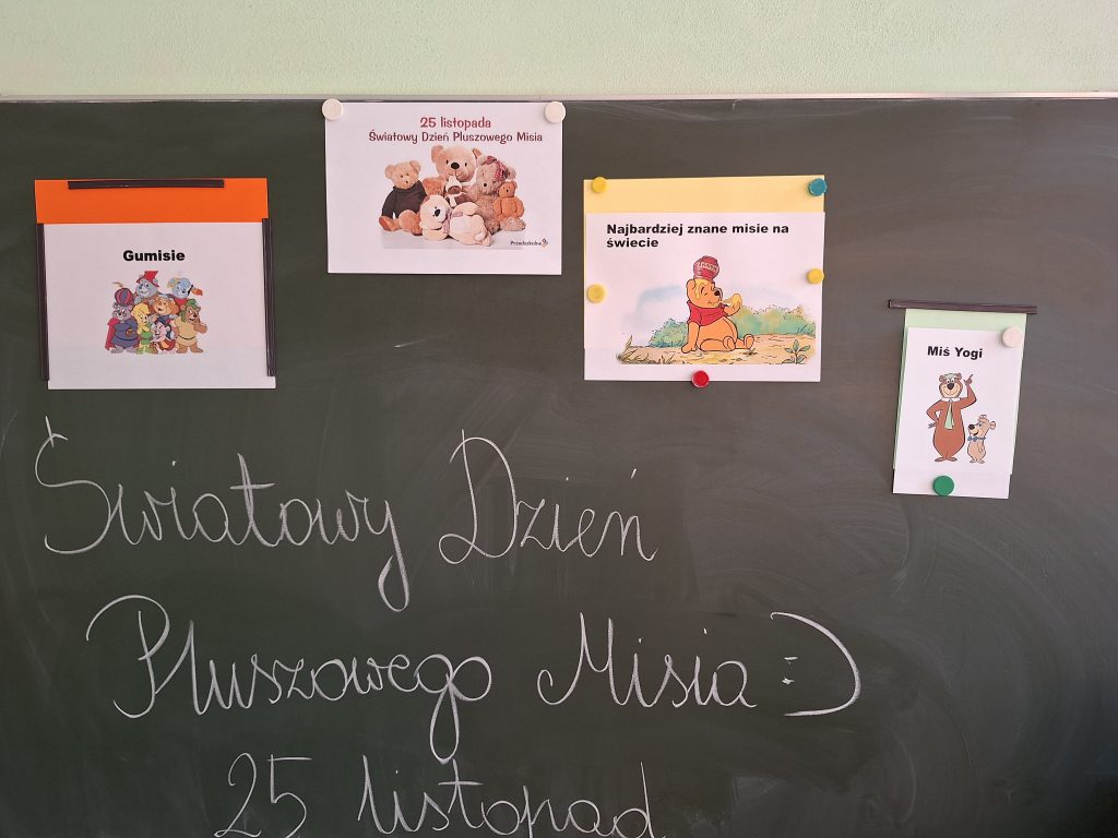 Wszystkie dzieci kochają Przytulanki. Dzień Pluszowego Misia jest idealną okazją do wspólnego świętowania. W tym dniu każde dziecko przyniosło swojego ulubionego misia, poznało też historię najbardziej znanych misiów na świecie. Kiedy puchaty przyjaciel jest blisko, wtedy nawet najbardziej pochmurny dzień staje się przyjemny. Dzieciaki za udział w zabawie otrzymały słodką niespodziankę.