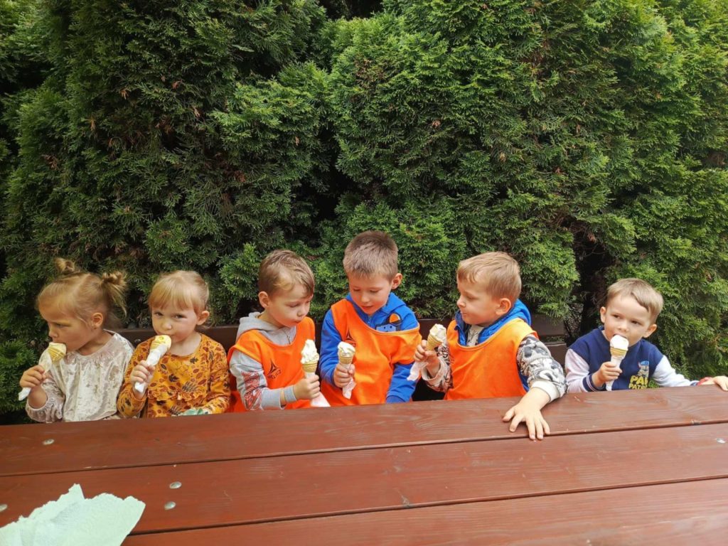 Po seansie poszliśmy na krótki spacer, a następnie zatrzymaliśmy się na pyszne lody. Dzieci były zachwycone słodką niespodzianką i z apetytem zajadały swoje ulubione smaki.