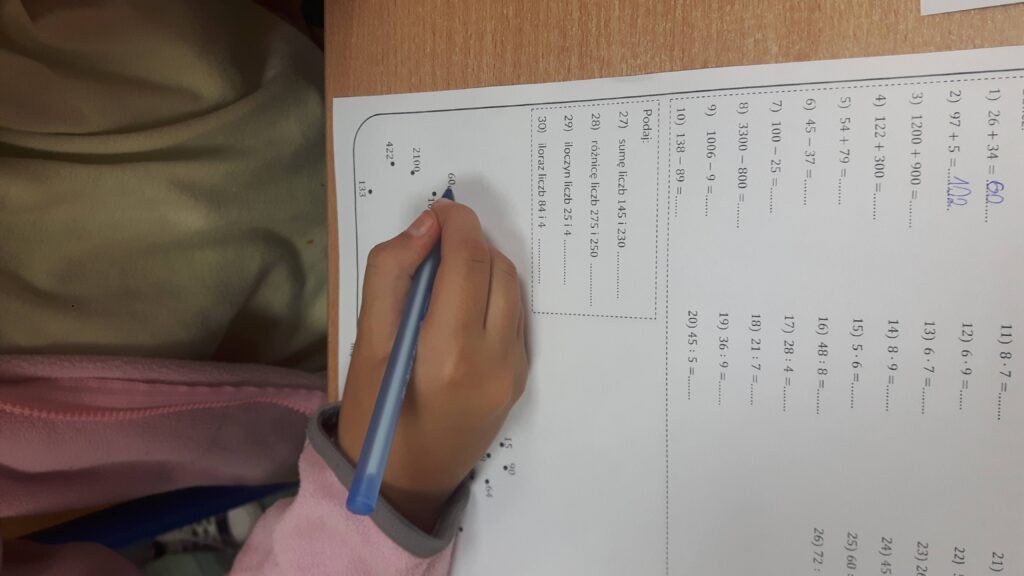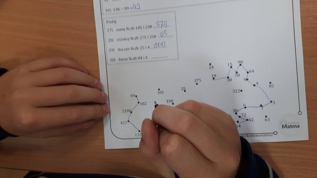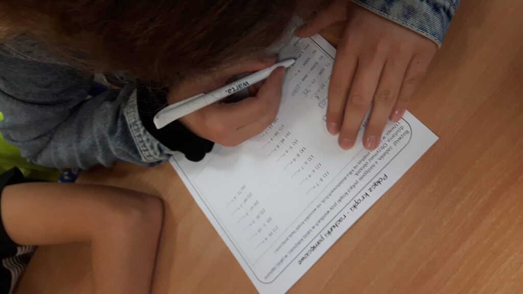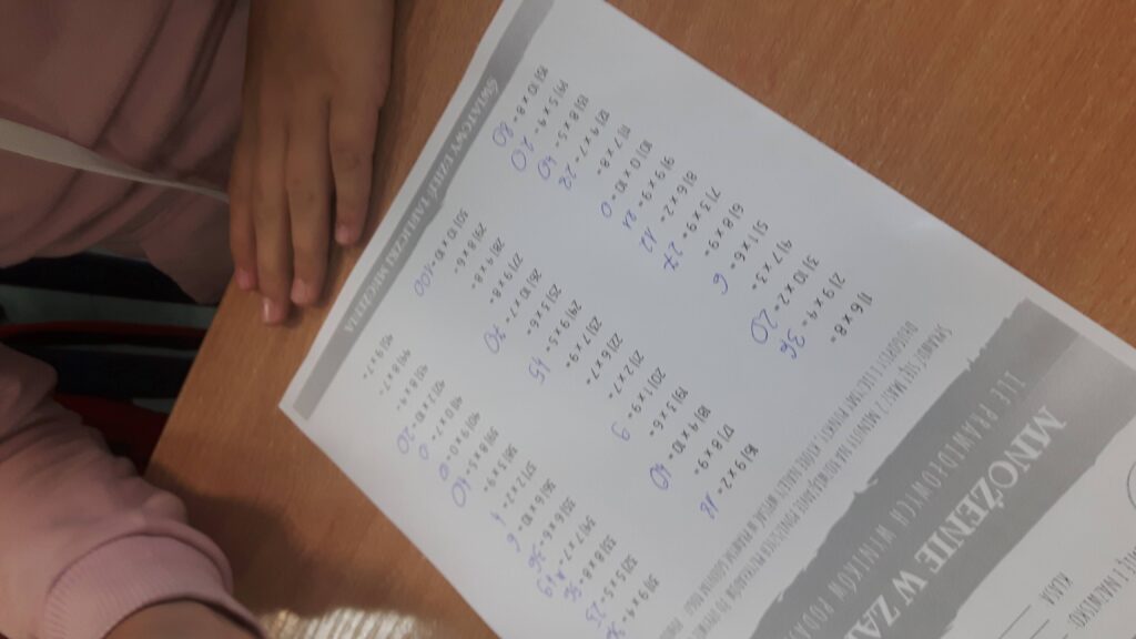 Podczas zajęć w świetlicy szkolnej wychowankowie zgłębiali tajniki sprytnego liczenia oraz rozwiązywali matematyczne łamigłówki. Uczniowie klas: Vb, VIa i VIb zostali poddani egzaminowi z tabliczki mnożenia na swoich lekcjach matematyki, zmagali się też z łamigłówki, zakodowanymi obrazkami oraz wzięli udział w grze doskonale się przy tym bawiąc.